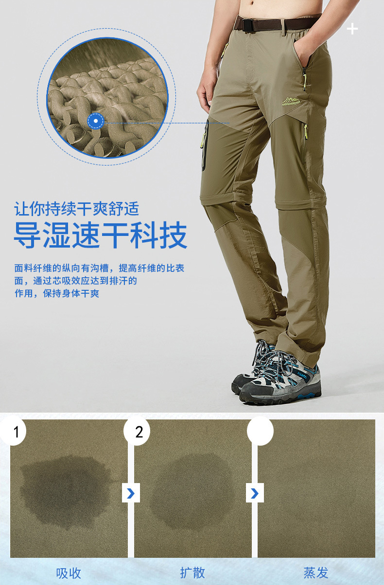 남성용 및 여성용 야외 속건성 바지, 여름 통기성 탈착식 2섹션 충전 바지, 하이킹 및 등산 캐주얼 스포츠 바지스토어 가기