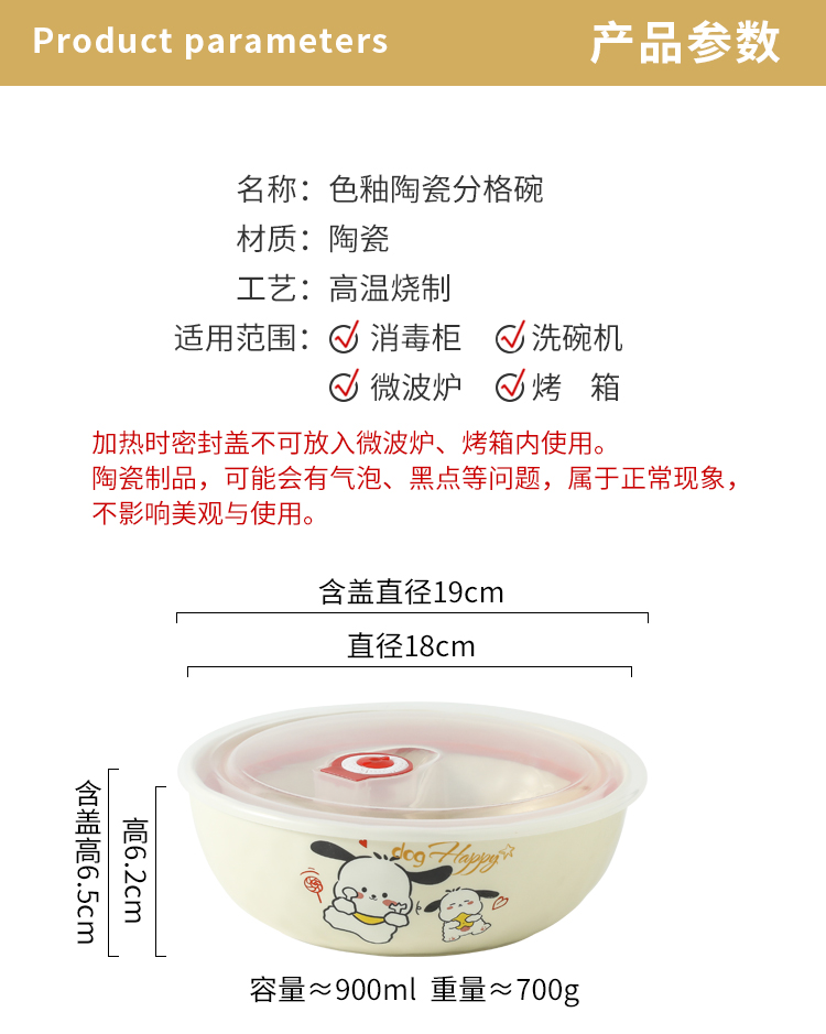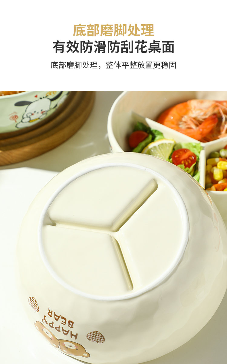 세라믹 분할 디너 플레이트 성인의 양적 분리 된 그릇 지방 감소 식사 가정 뚜껑 깊이 3