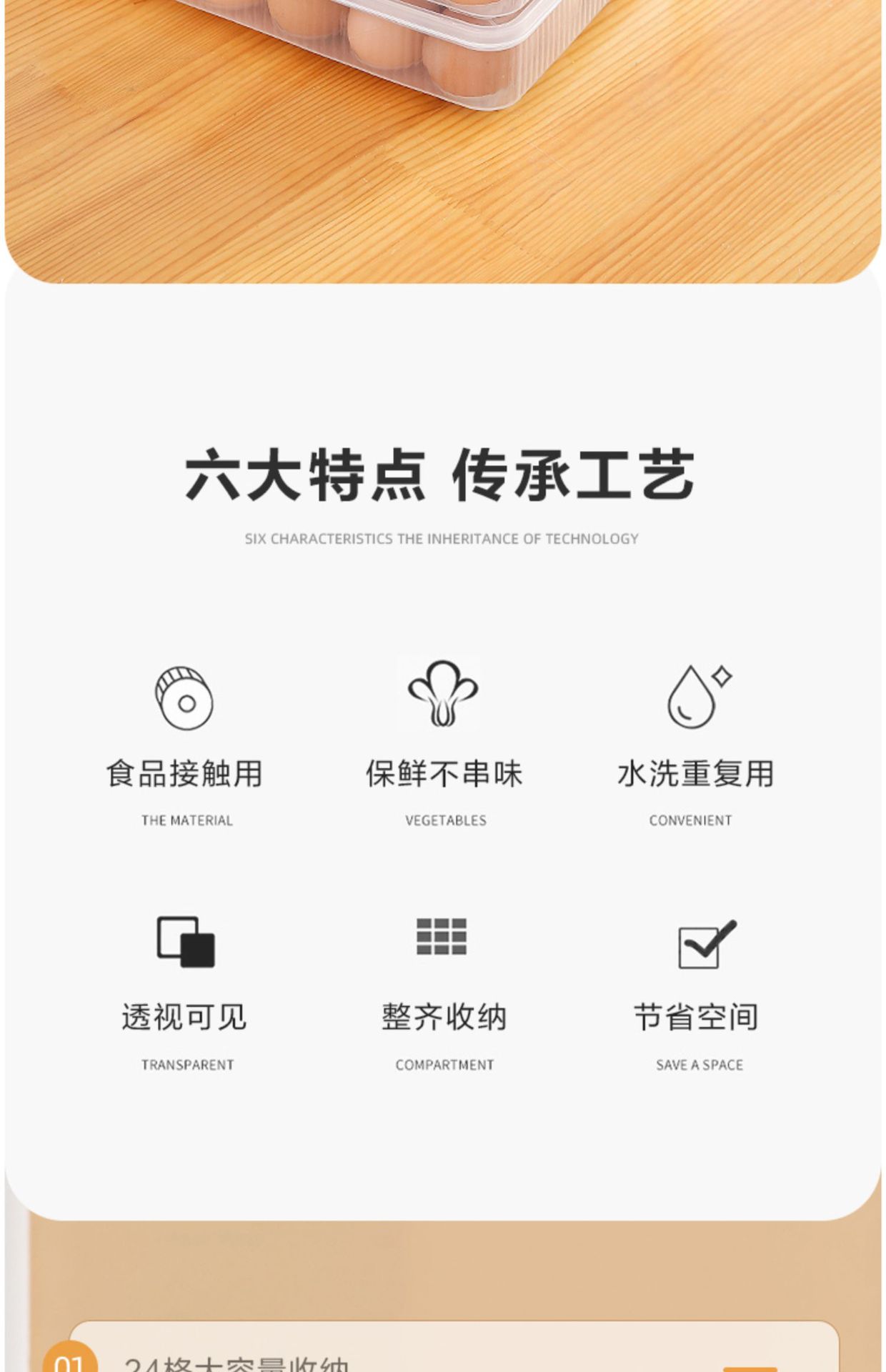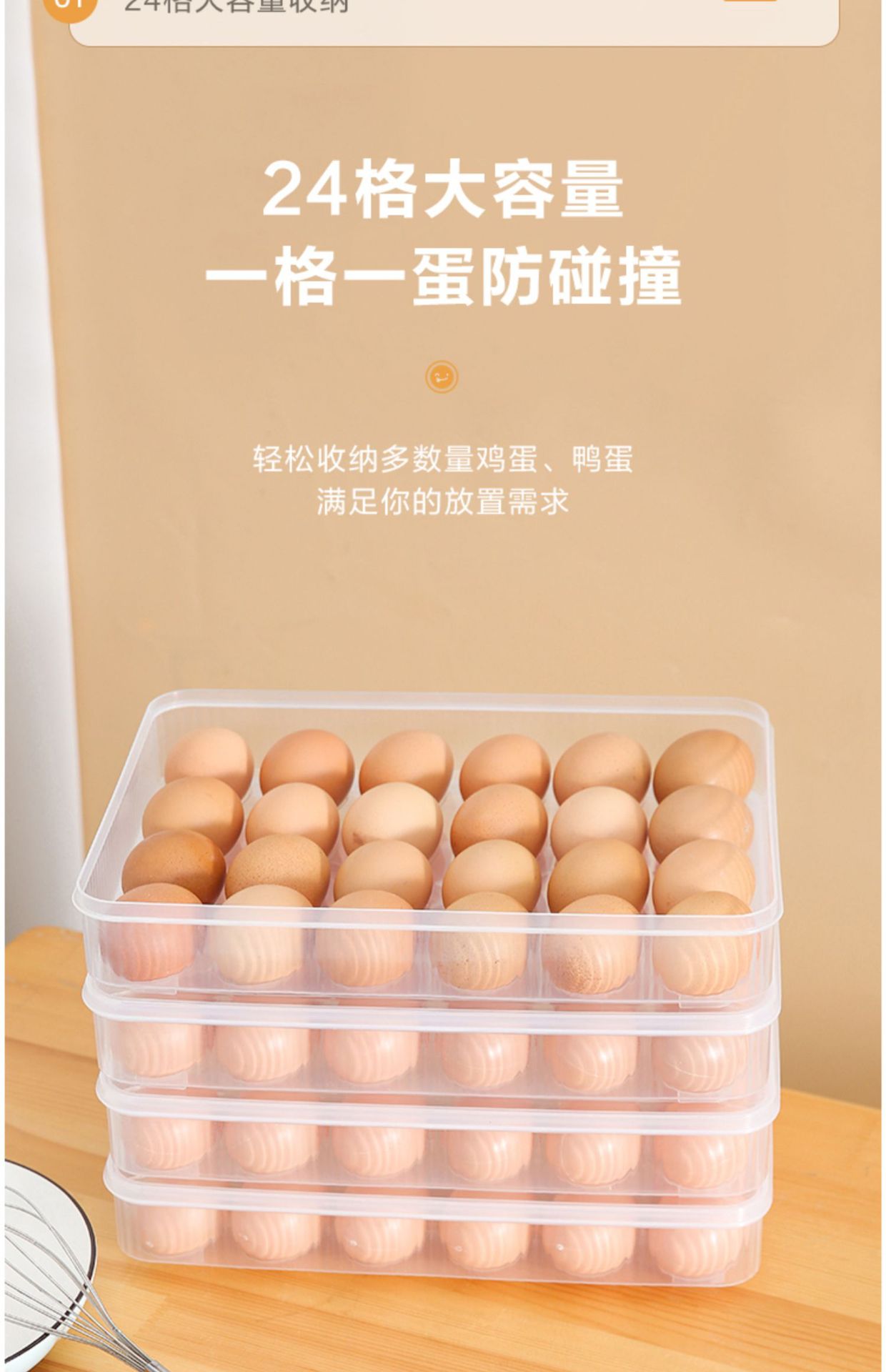 • 투명한 색상 [1겹, 1커버]로 계란 24개를 담을 수 있습니다.✓