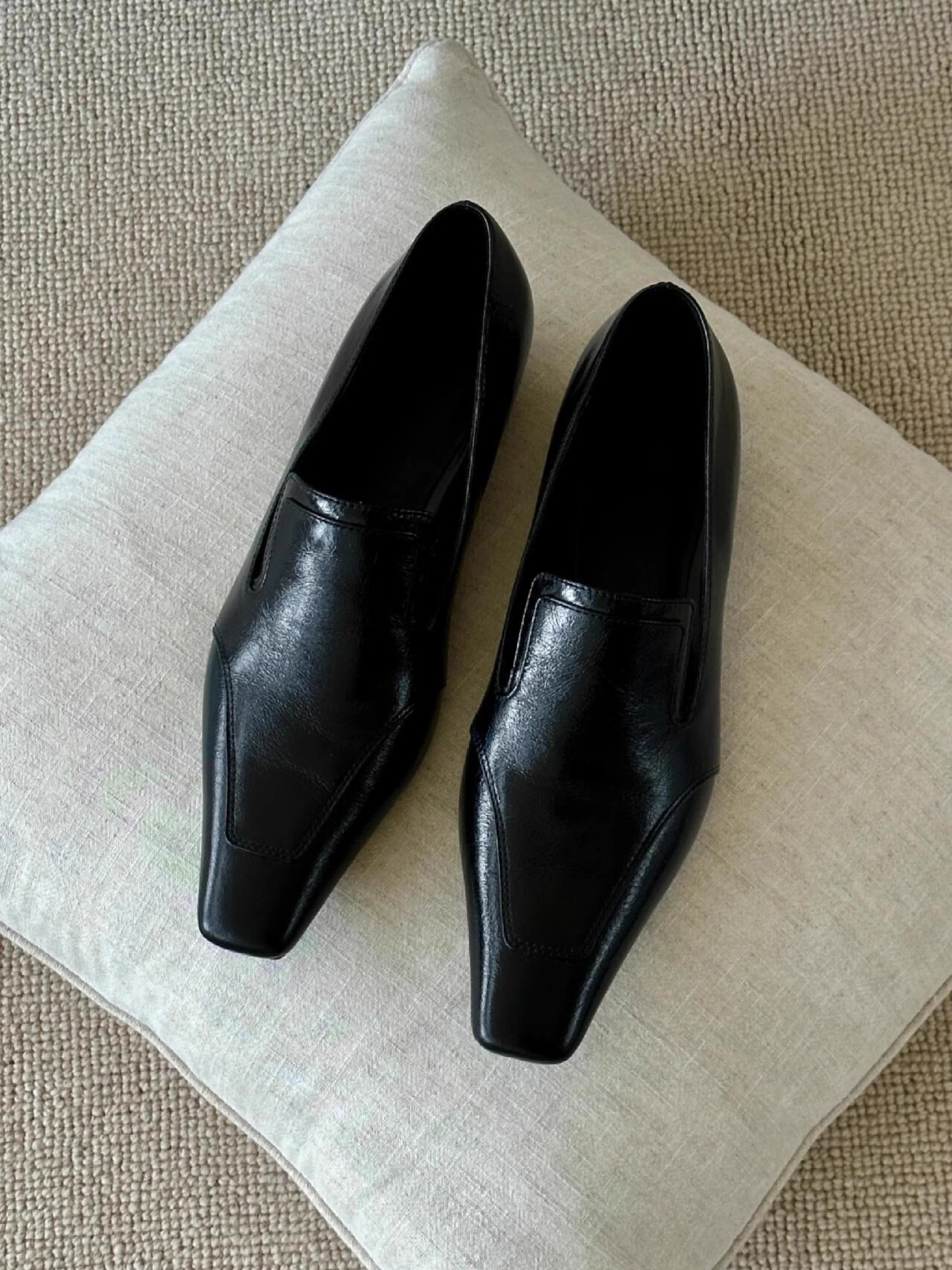 소가죽 버전~천연가죽 스몰 스퀘어토 로우힐 여성 뮬, 활용도 높은 가죽신, 메리제인 여성 통근화
