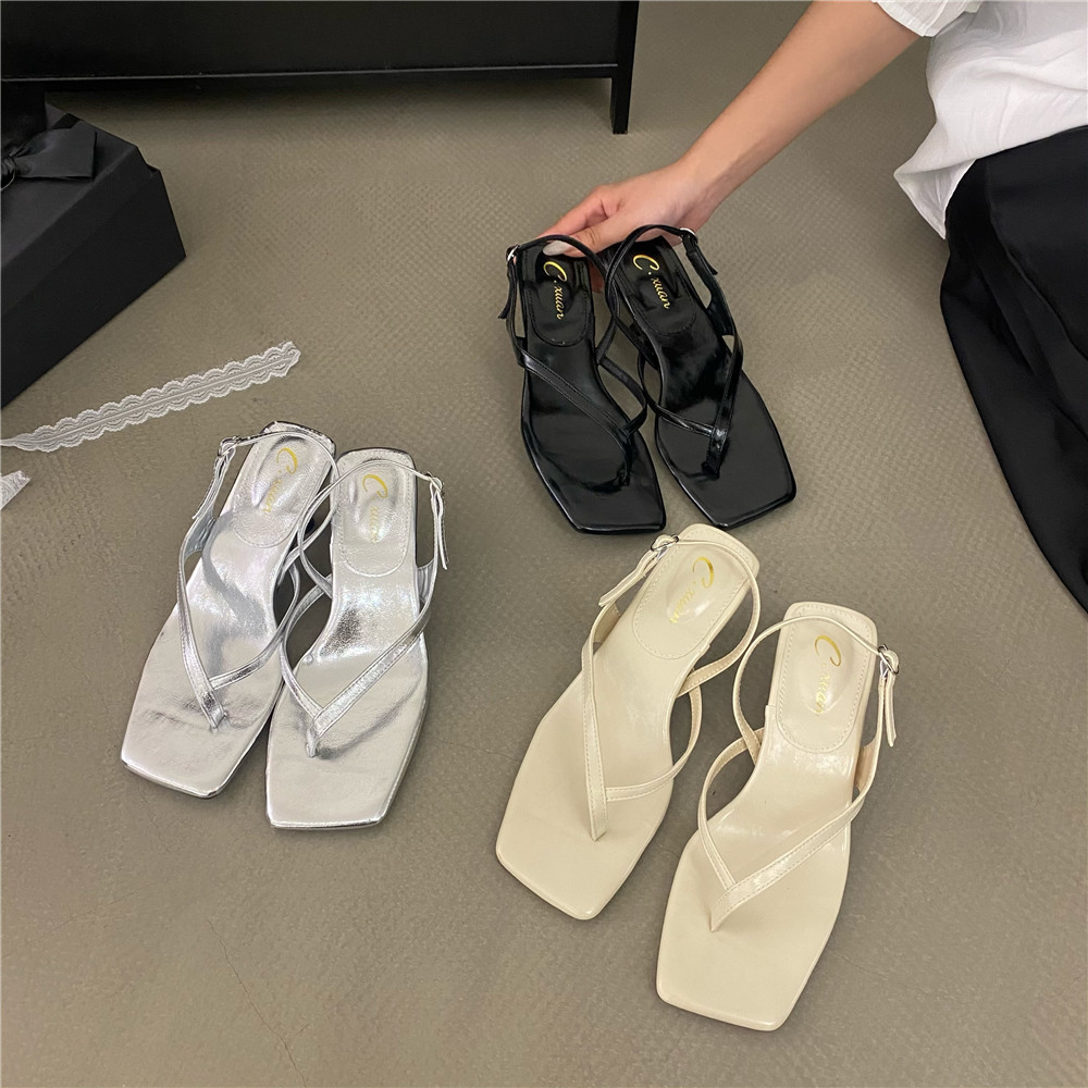 니치 프렌치 실버 스타일 원 스트랩 하이힐 샌들 여성 신발 2025 신상 여름 얇은 스트랩 로마 신발