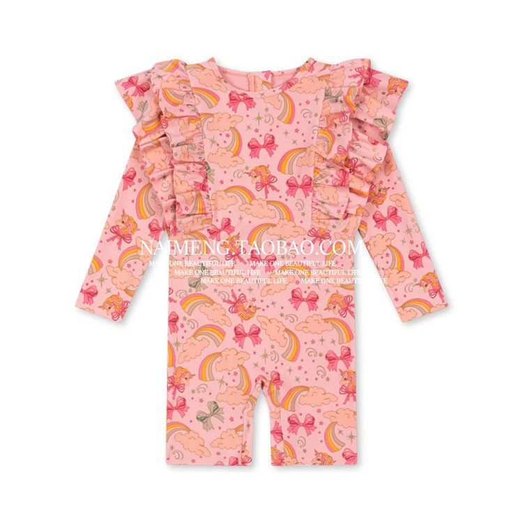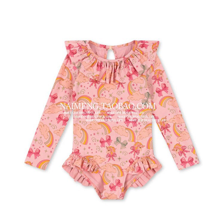 • 유니콘 올오버 프린트 긴팔 원피스 수영복(핑크)