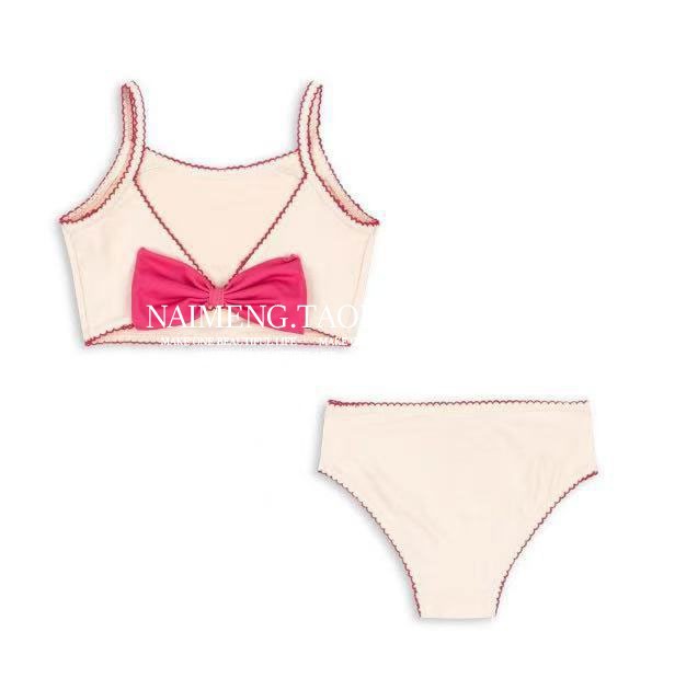 • 고양이 리본 스플릿 수영복 세트 (로즈 레드 리본)