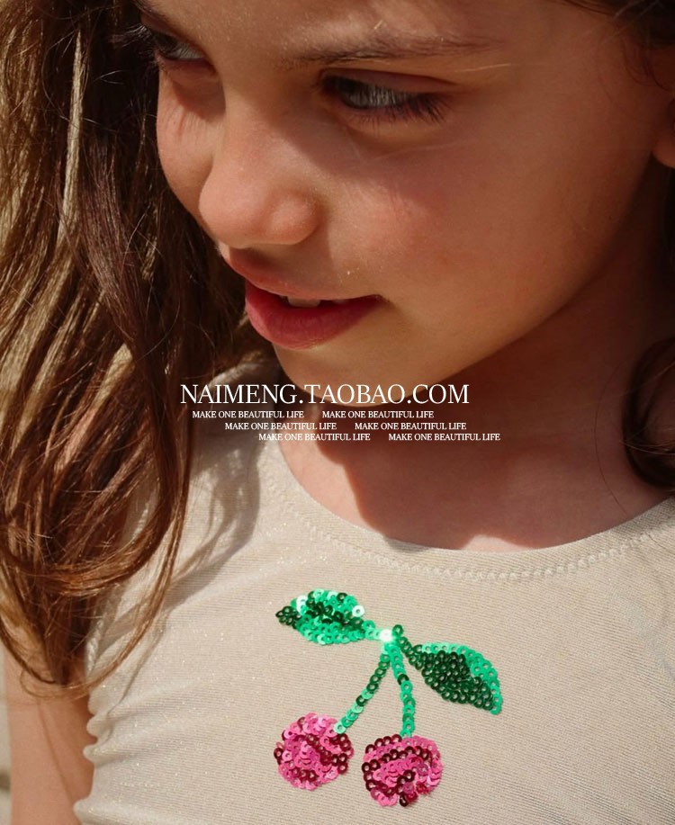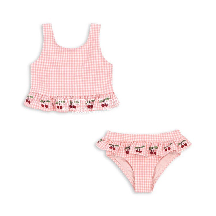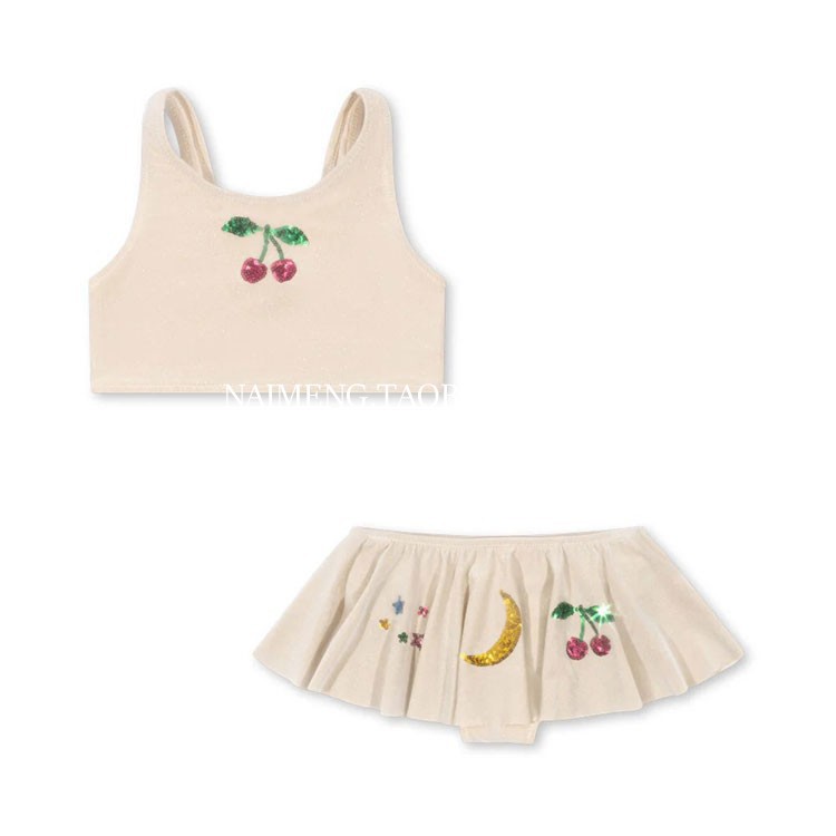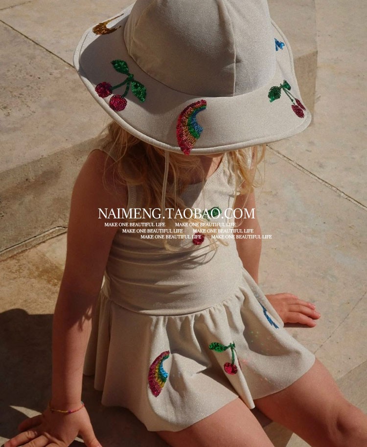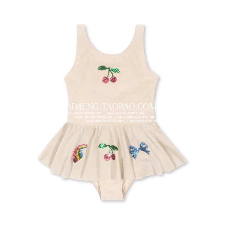• 레인보우 체리 자수 탱키니 수영복 (살구)
