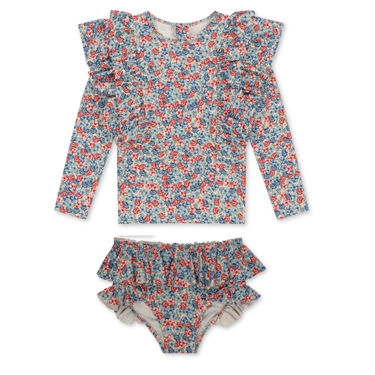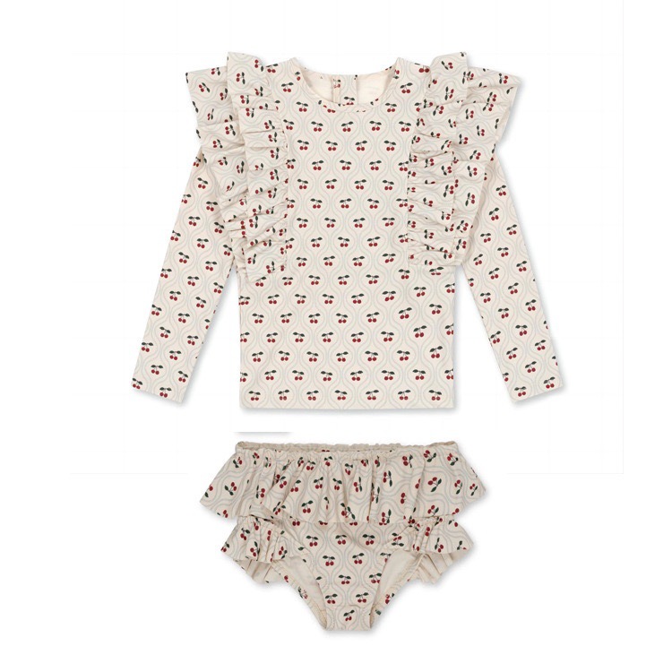 • 붉은 꽃 긴팔 수영복 세트