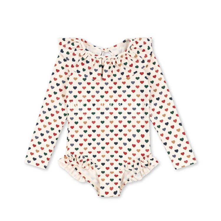 • 컬러풀한 러브 프린트 긴팔 원피스 수영복(오프화이트)