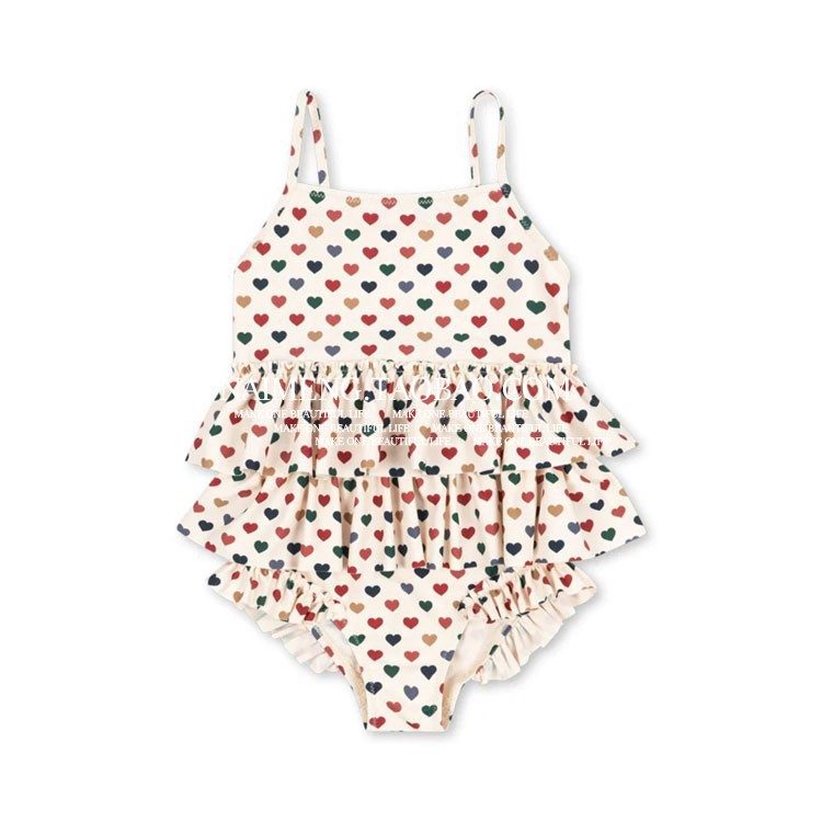 • 컬러풀한 러브 프린트 레이어드 원피스 수영복(오프화이트)