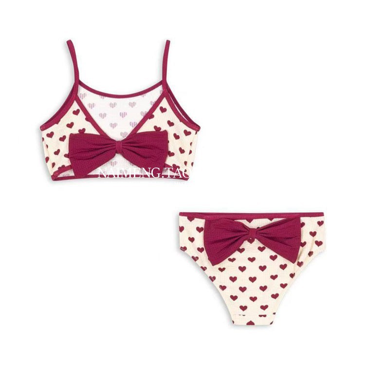 • 리본 하트 올오버 프린트 탱키니 수영복 (핑크)