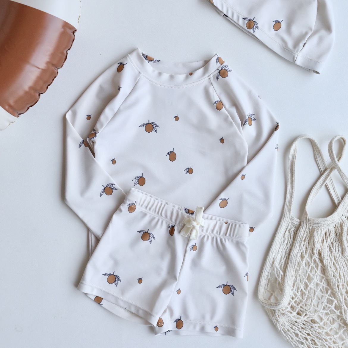 • 레몬 프린트 긴팔 수영복 세트