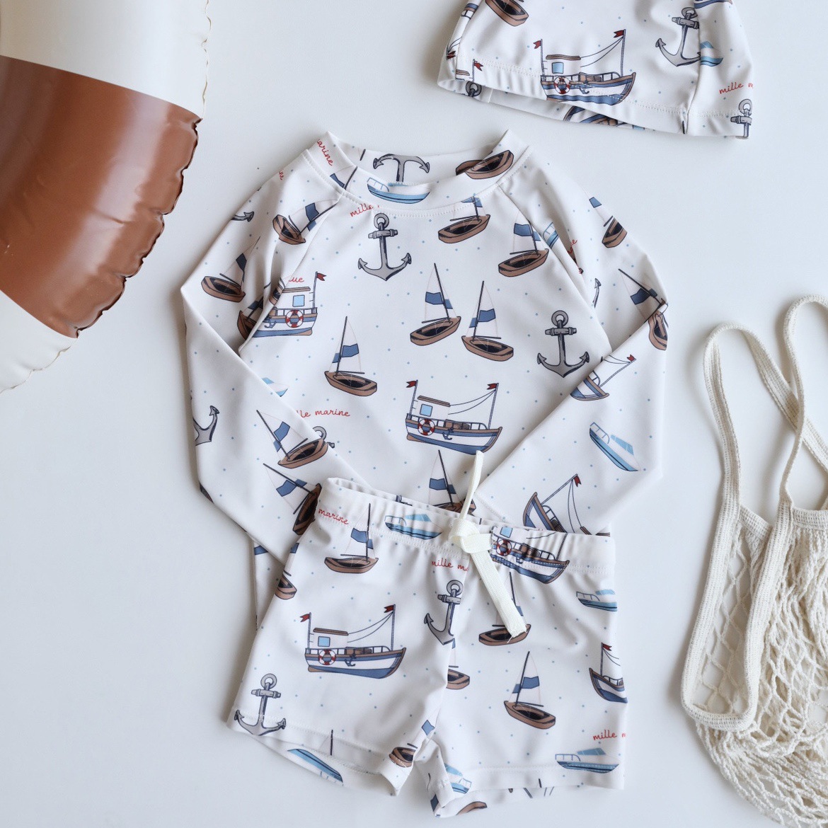 • 앵커 프린트 긴팔 수영복 세트