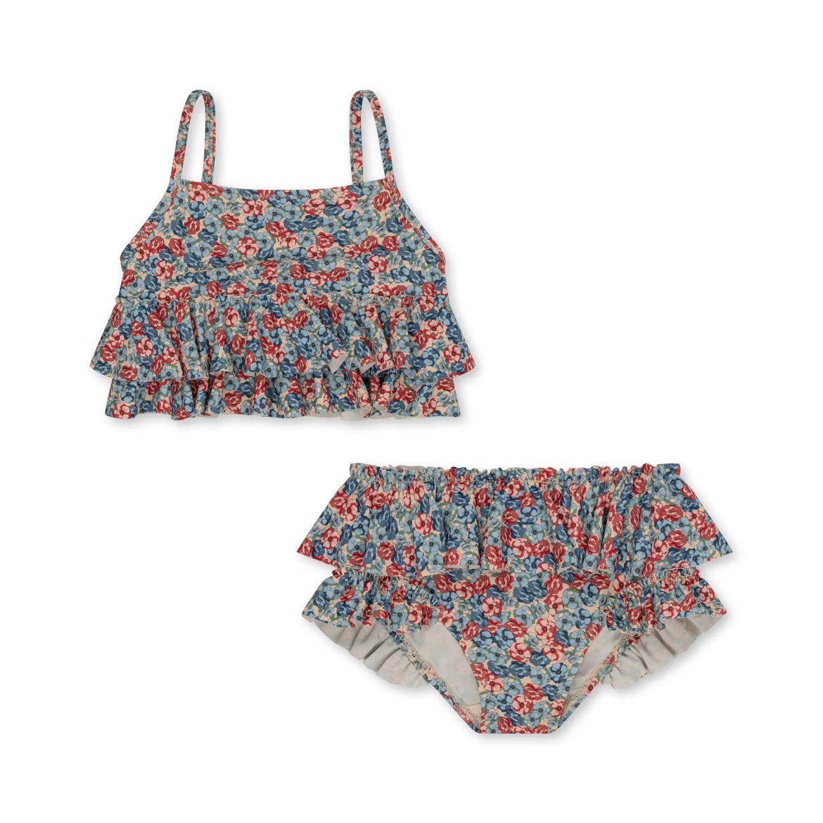 • 붉은 꽃 서스펜더 수영복 세트