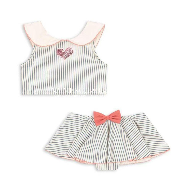 • 스트라이프 레이스 칼라 스플릿 보우 수영복 세트 (라이트블루)