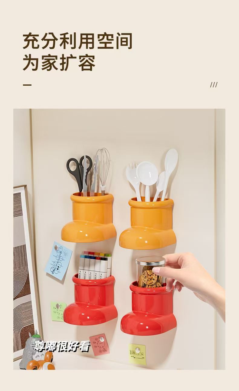 창의적인 귀여운 부츠 보관함, 벽걸이형 소품 장식, 펀치 없는 주방 침실 보관함스토어 가기