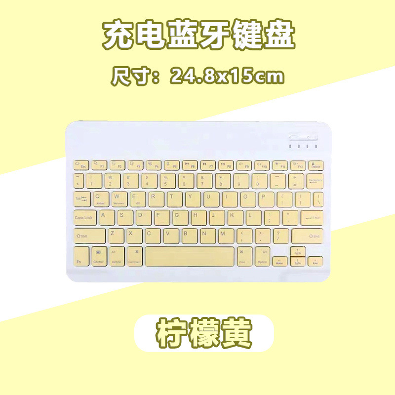 • [레몬옐로] 빠른 반응 + 편리하고 빠른 - 단일 충전 블루투스 키보드 [케이블 + 스탠드 + 스티커 포함]