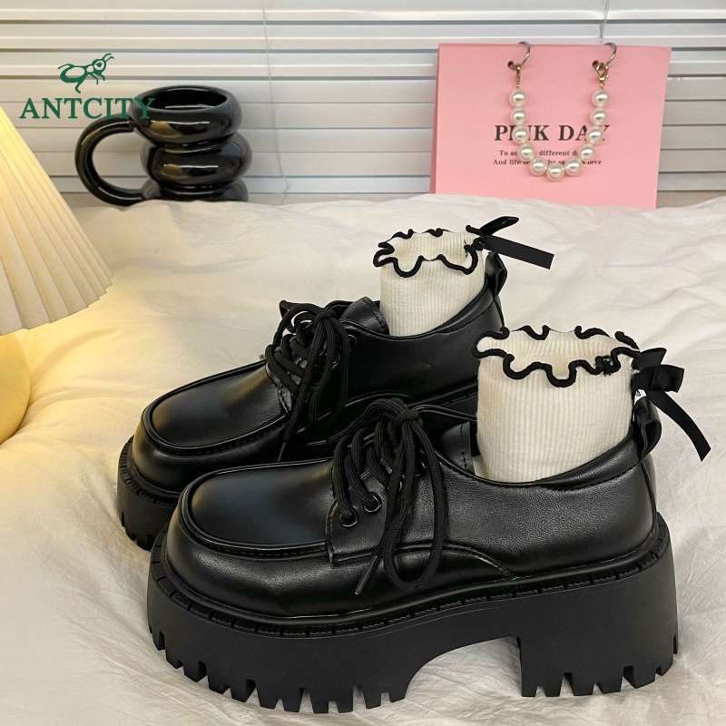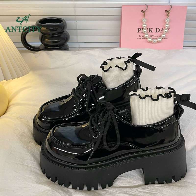 ANTCT 밝은 가죽 두꺼운 굽 두꺼운 밑창 작은 가죽 신발 여성 2025 봄 새로운 스타일 높이 증가 영국 스타일 다목적 일본 jk 뮤직스토어 가기