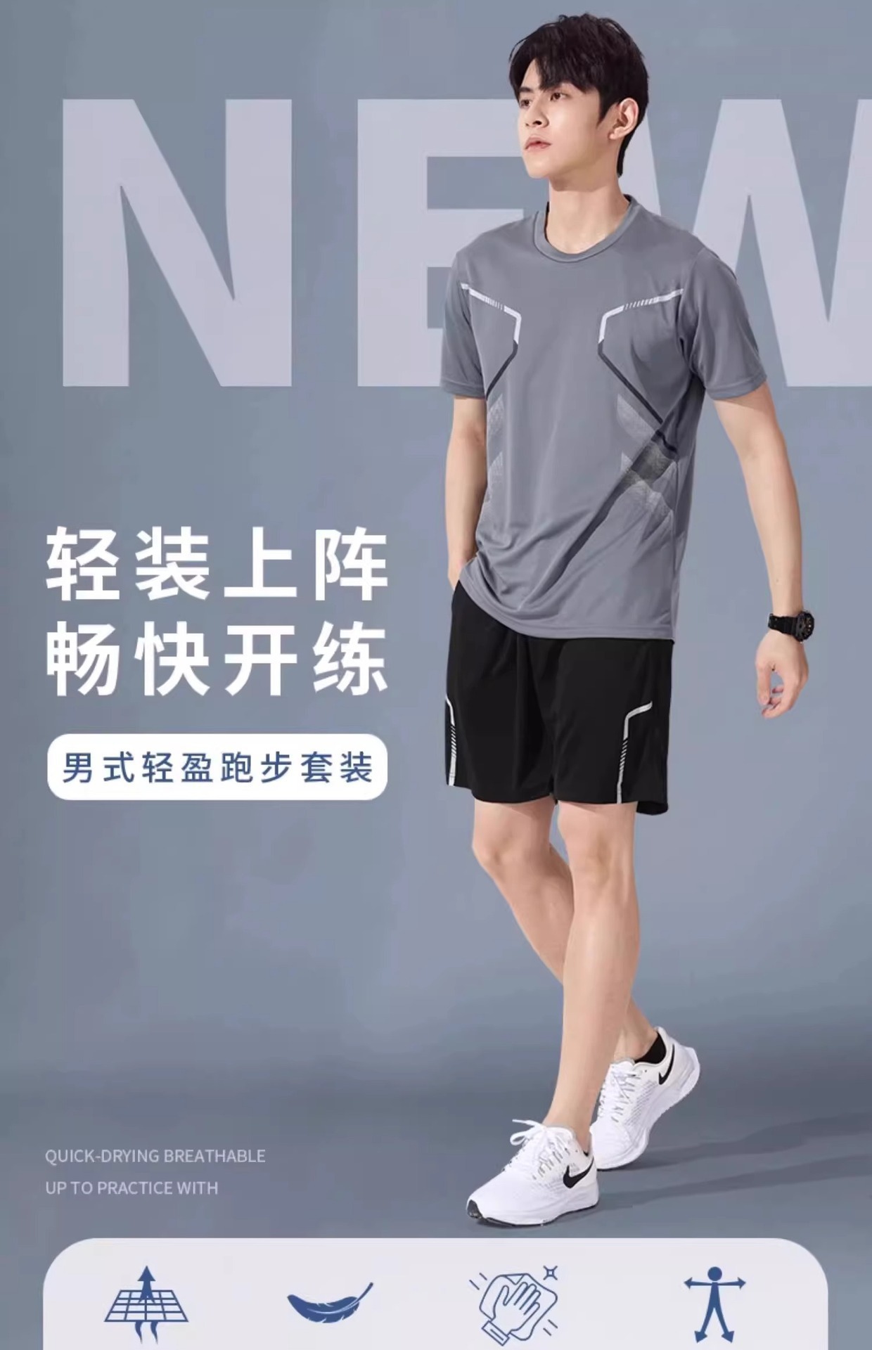 여름 빠른 건조 스포츠웨어 세트 남자 달리기 반팔 아이스 실크 농구 세트 깃털 피트니스 탑 반바지스토어 가기
