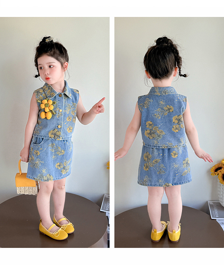 여자 여름 조끼 세트 2025 새로운 어린이 데님 조끼 셔츠 스커트 투피스 세트 아기 얇은 옷스토어 가기