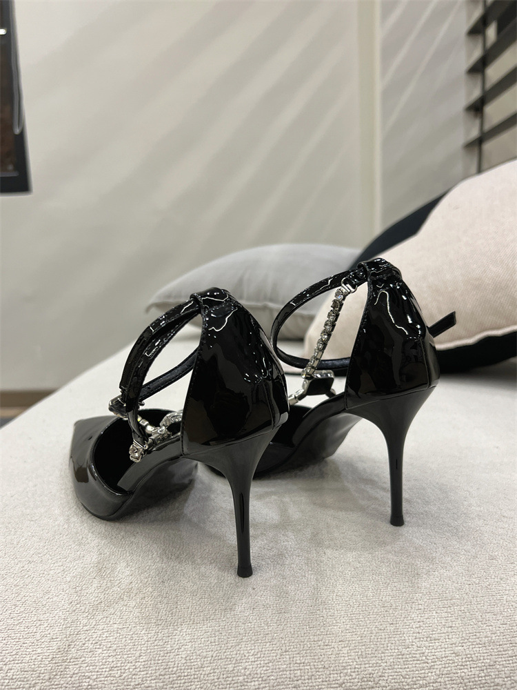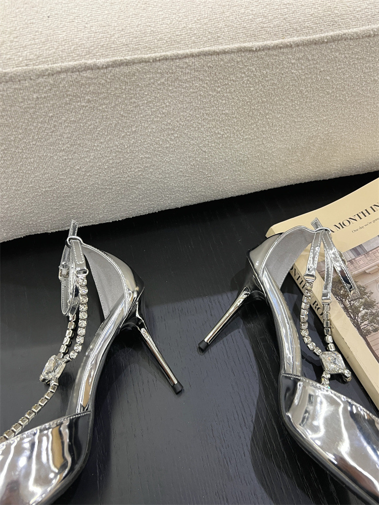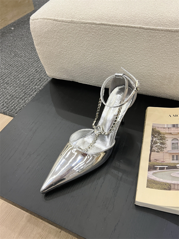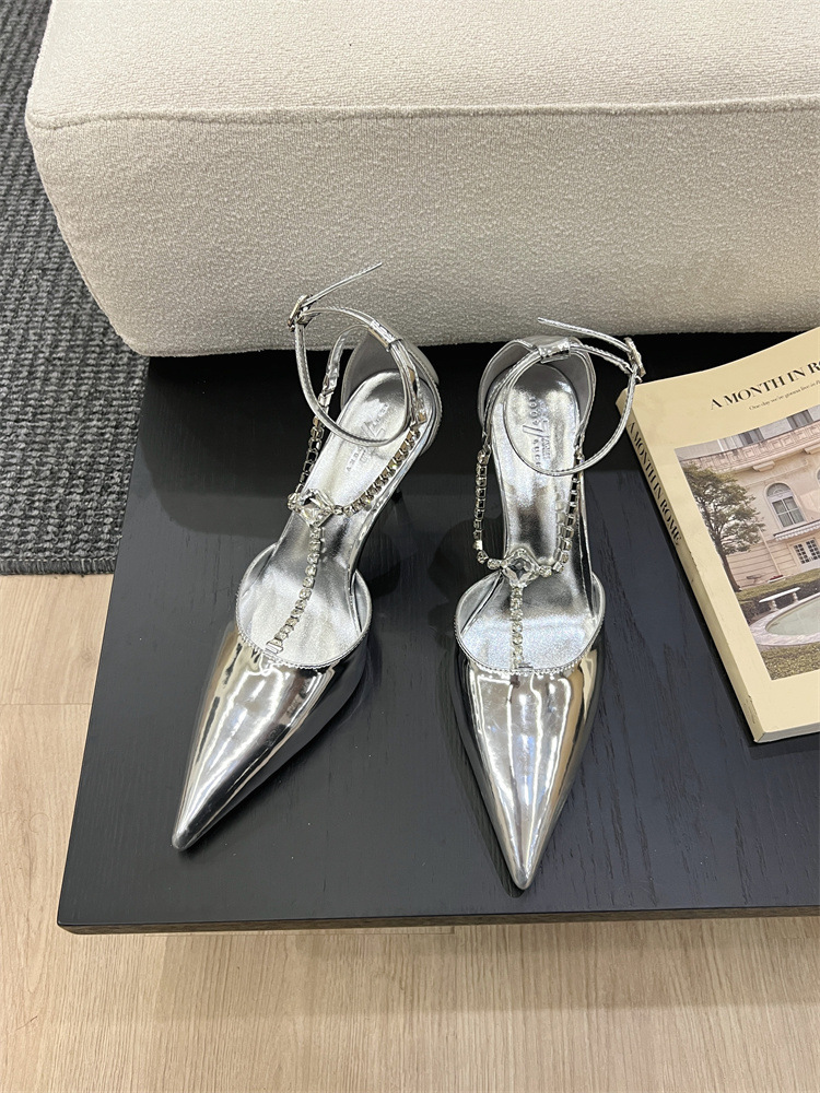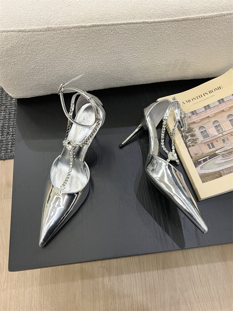여성을위한 뾰족한 발가락 가죽 가죽 백 힐 샌들 2024 여름 섹시한 발가락 라인 석 T 스트랩 스틸레토 하이힐스토어 가기