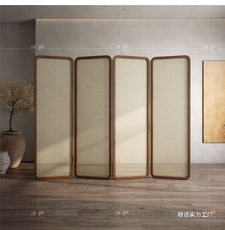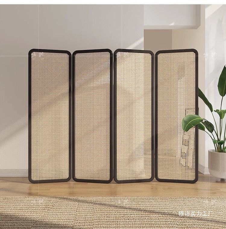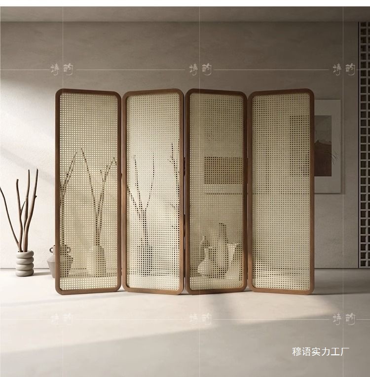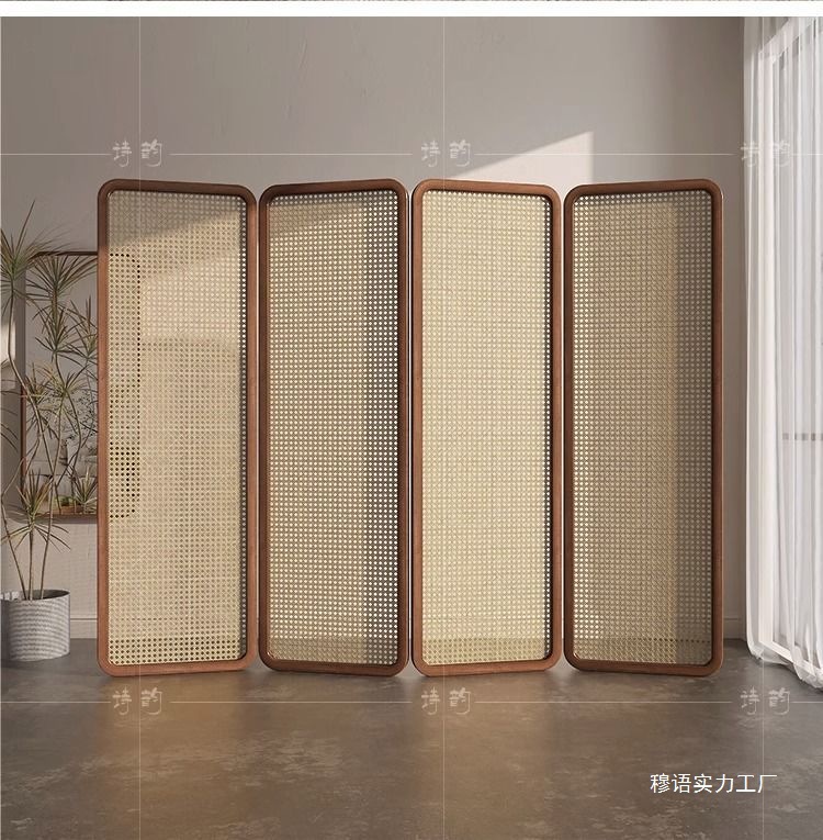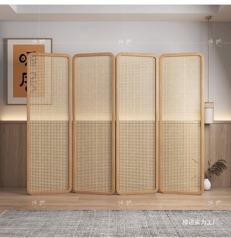새로운 중국 스타일의 등나무 스크린 파티션 거실 문 커버 사무실 입장 커버 접이식 모바일 솔리드 우드 접이식 화면