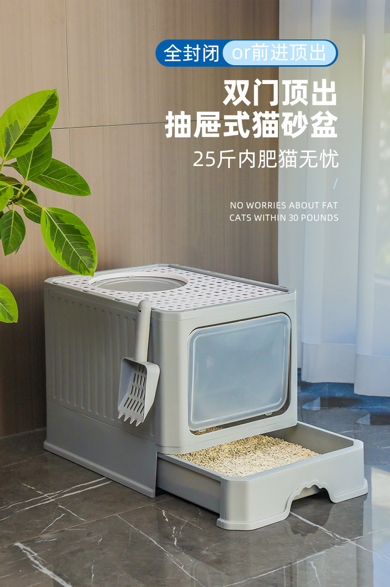 완전히 밀폐 된 고양이 쓰레기 상자 접이식 서랍 형 탈취제 고양이 화장실 대형 안티 스플래시 애완 동물 용품 도매