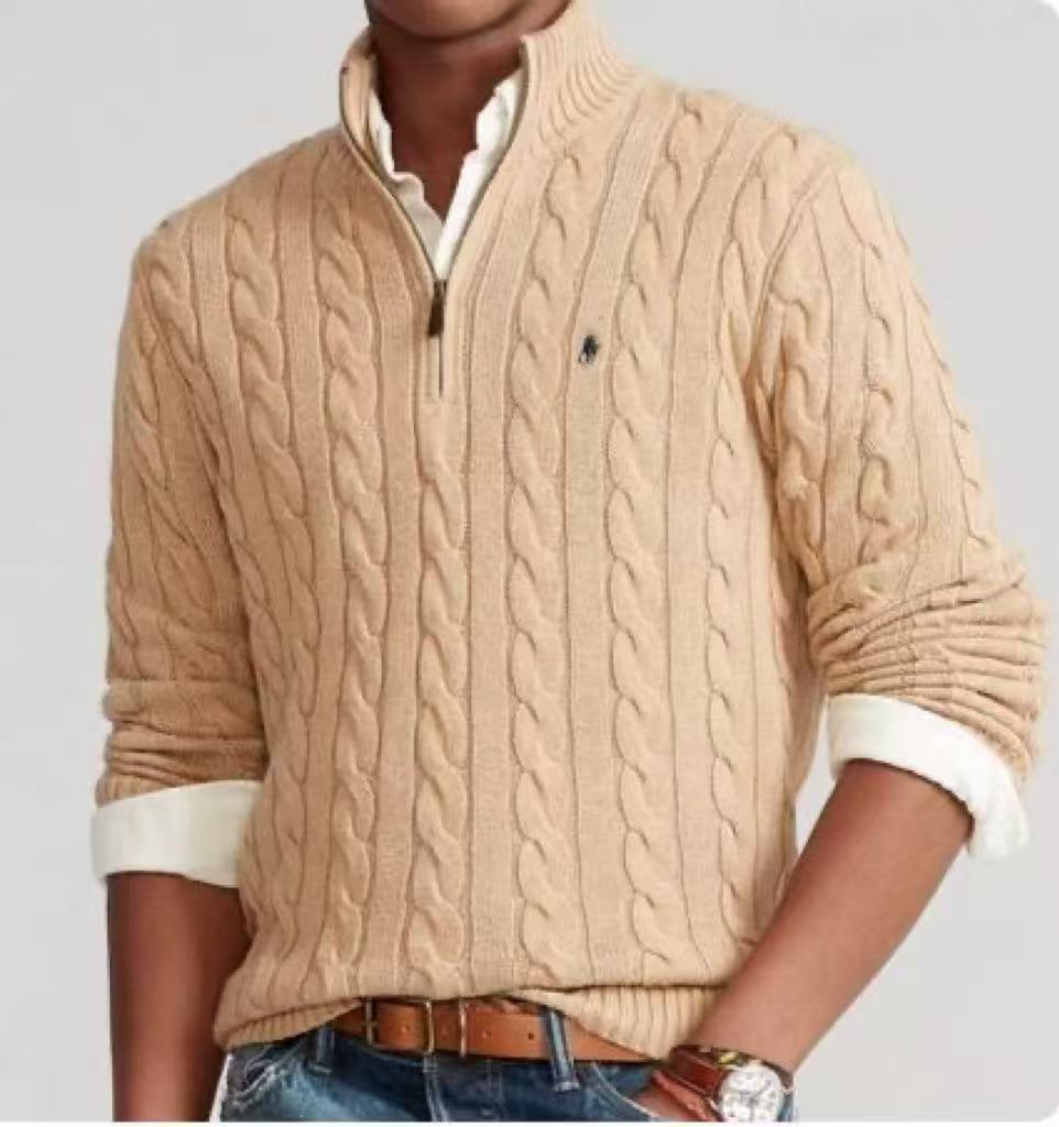 남성용 크로스보더 고품질 두꺼운 가을 겨울 스웨터, 반하이 지퍼 트위스트 니트 스웨터 재고 있음스토어 가기
