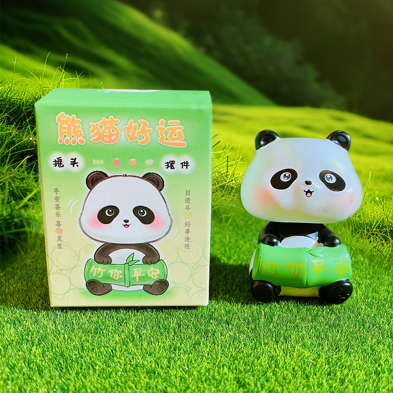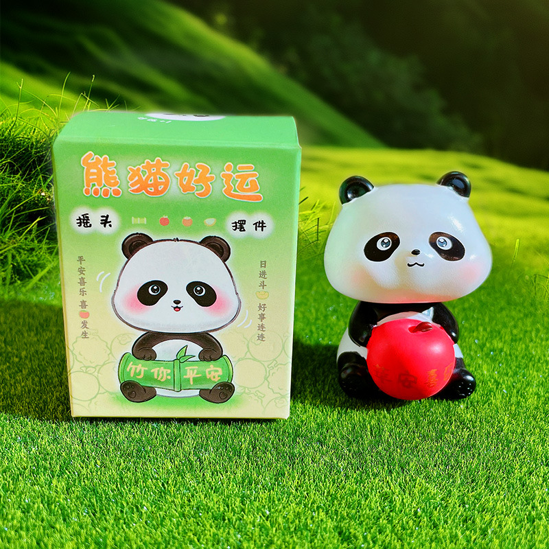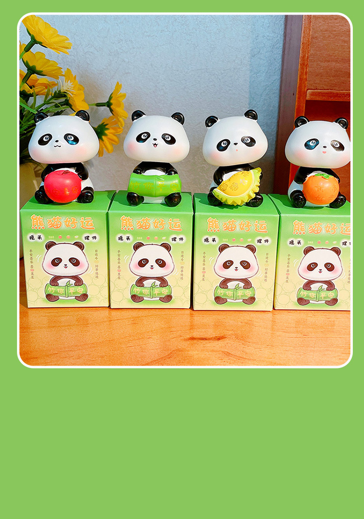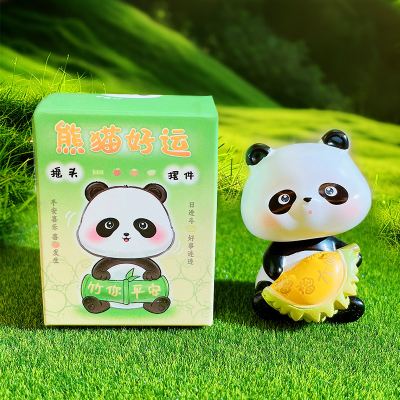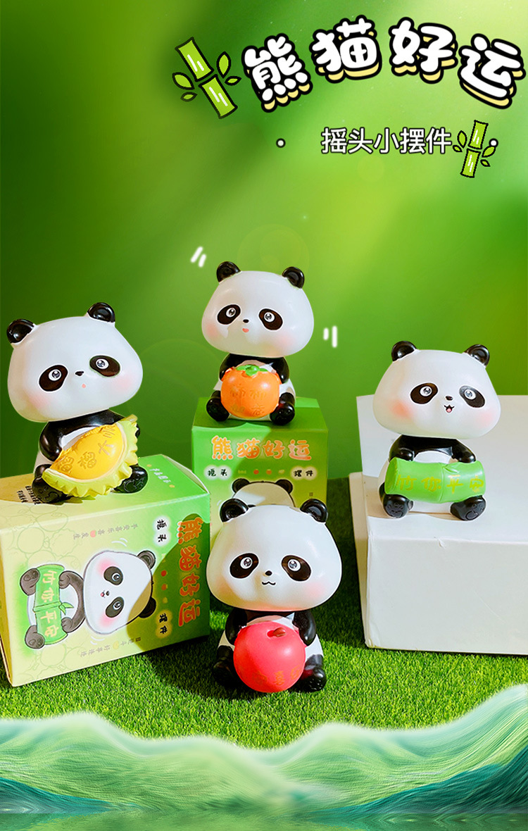 만화 팬더 행운의 흔들리는 머리 인형 손으로 만든 장식 작은 장식품 크리 에이 티브 수지 공예 홈 데스크탑 장식품