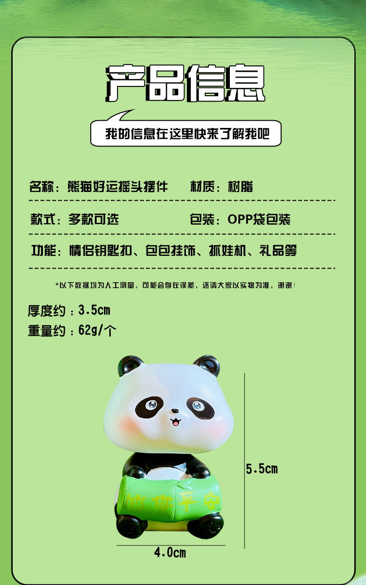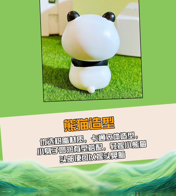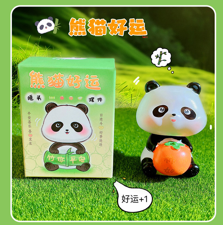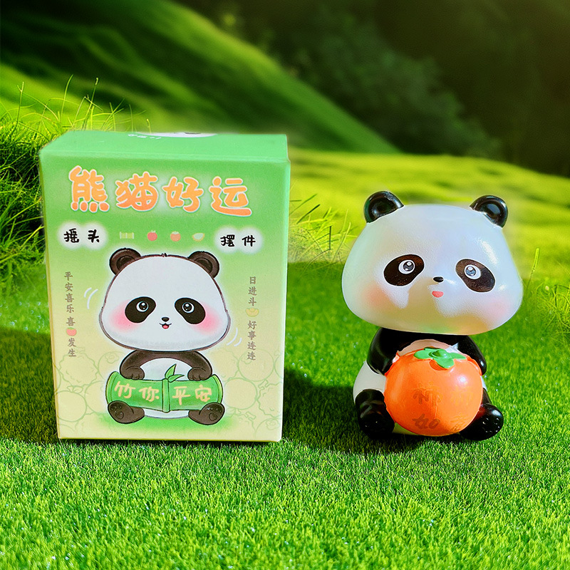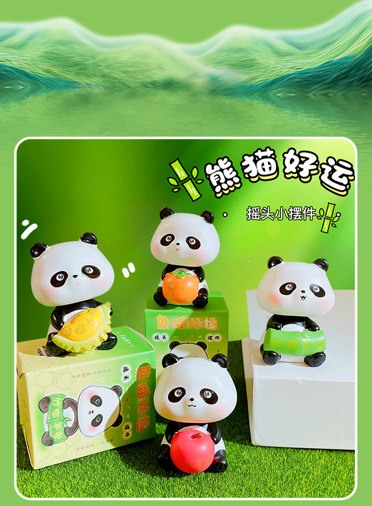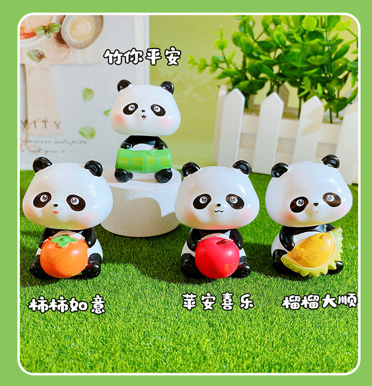 만화 팬더 행운의 흔들리는 머리 인형 손으로 만든 장식 작은 장식품 크리 에이 티브 수지 공예 홈 데스크탑 장식품