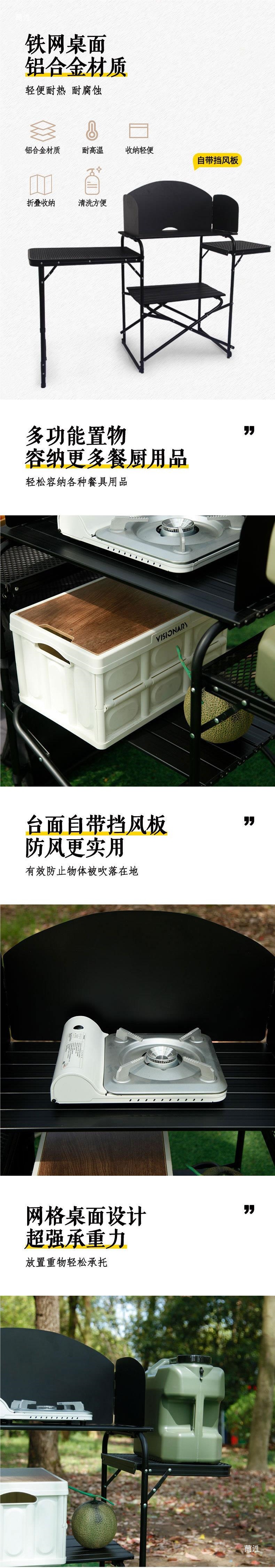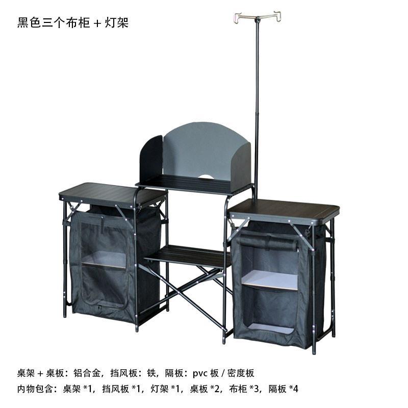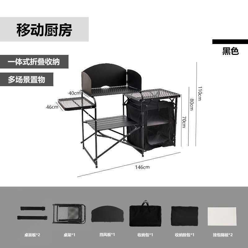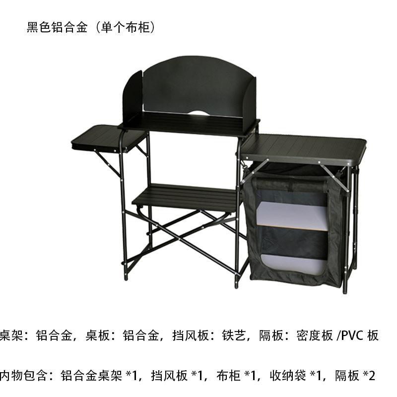 야외 다기능 모바일 주방 캠핑 피크닉 파티 캠핑을위한 보관 캐비닛 테이블이있는 알루미늄 합금 접이식 식탁스토어 가기