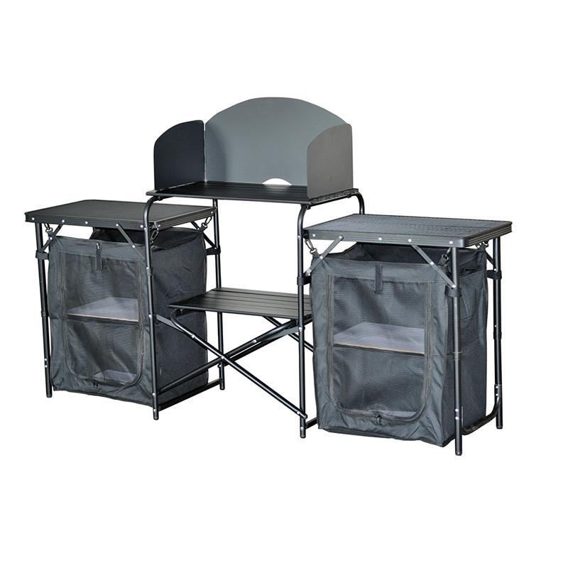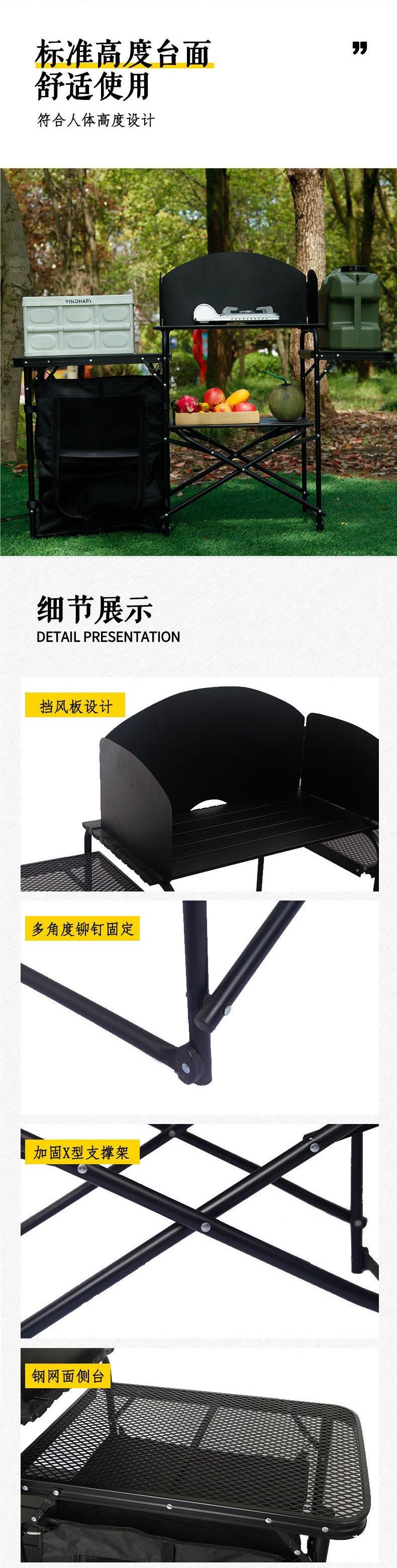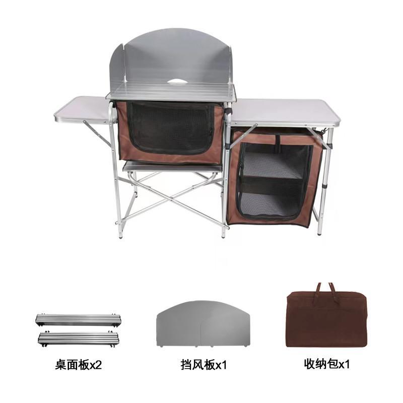 야외 다기능 모바일 주방 캠핑 피크닉 파티 캠핑을위한 보관 캐비닛 테이블이있는 알루미늄 합금 접이식 식탁