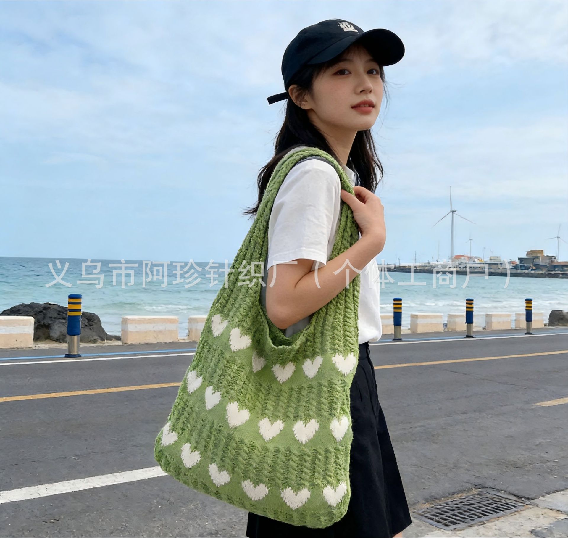 • 해외 직구 인기 상품 니트 빅 로고 토트백 그린 (60-33-12) 소량 재고 즉시 발송 가능