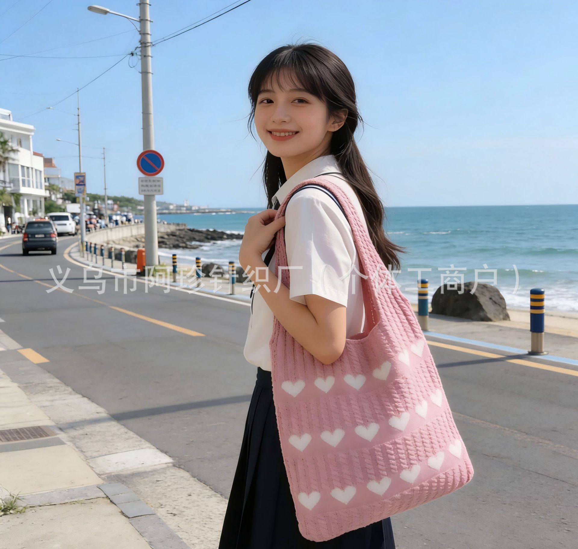 • 해외 직구 인기 상품 니트 빅 로고 토트백 로즈 핑크 (60-33-12) 소량 재고 즉시 발송 가능