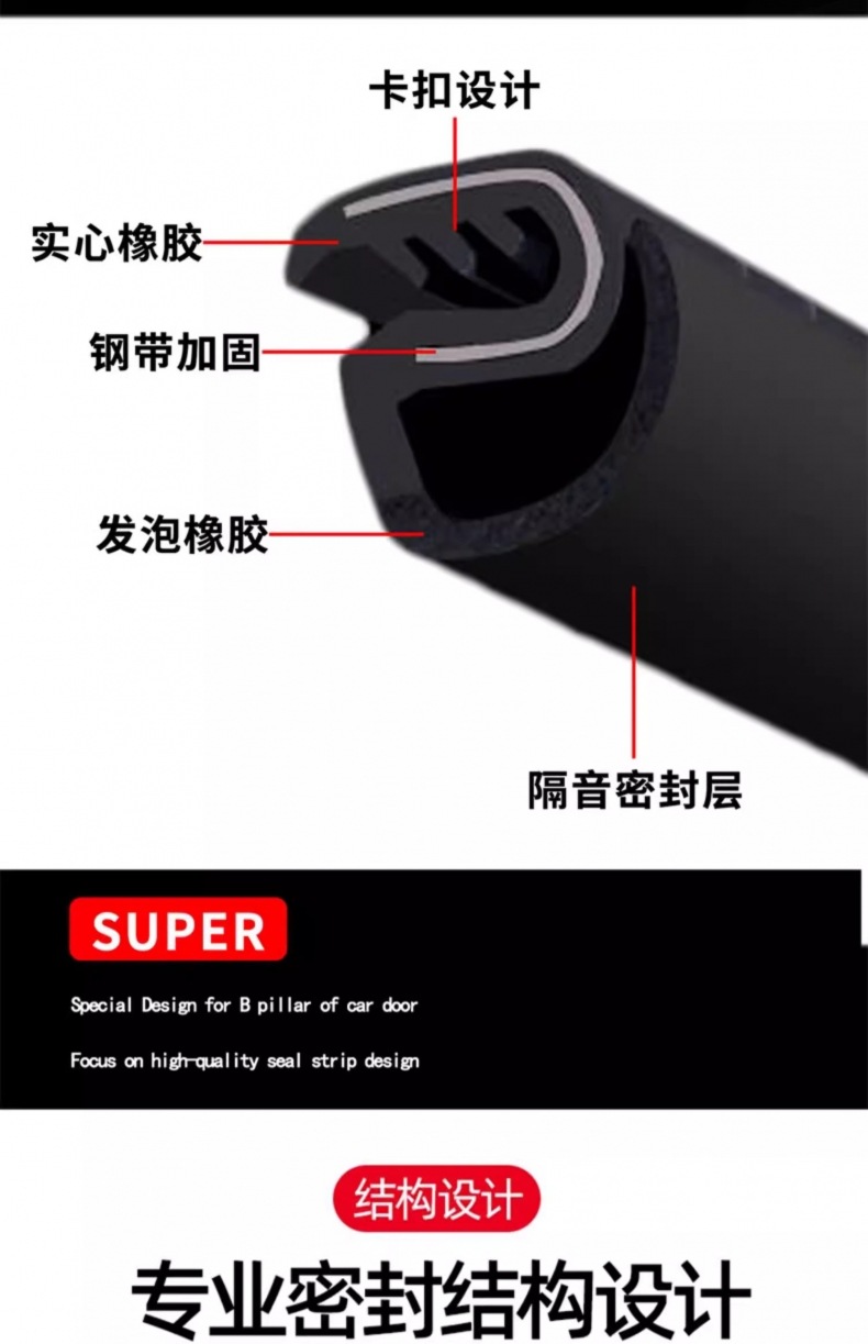 • 【C01】특수 B필러 씰링 스트립(한 쌍)/강판 내장/보다 안정적인 설치
