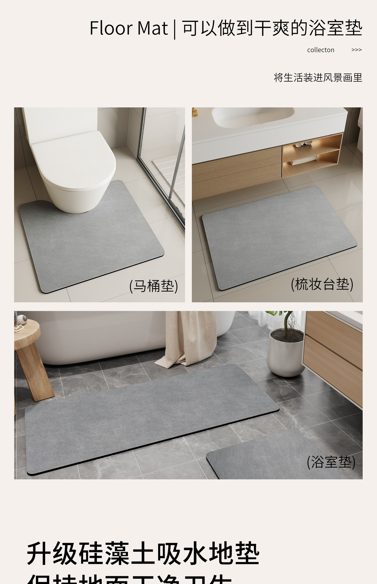• 컬러풀한 벨벳 욕실매트 - 미니멀리스트 그레이