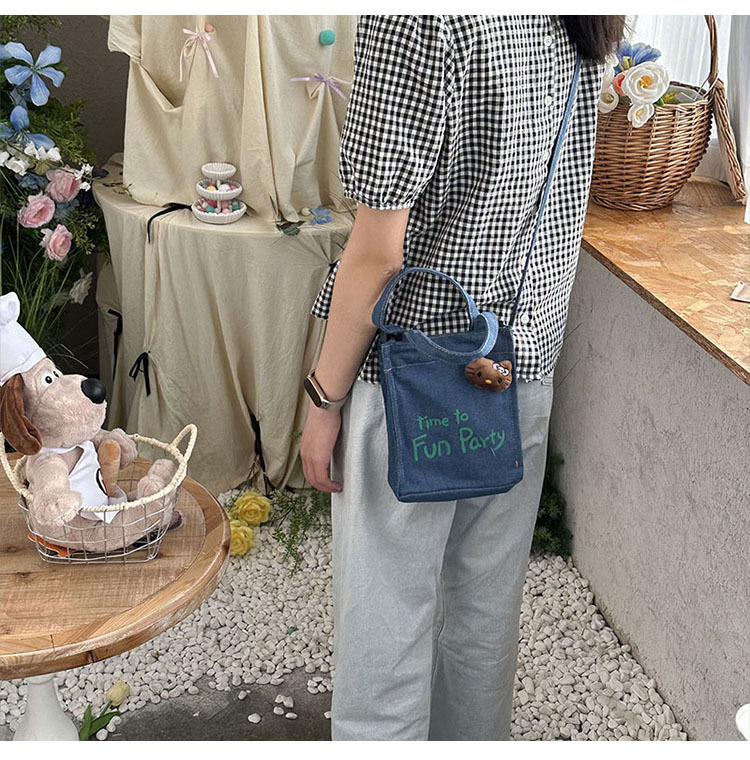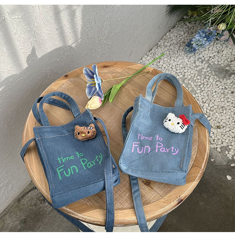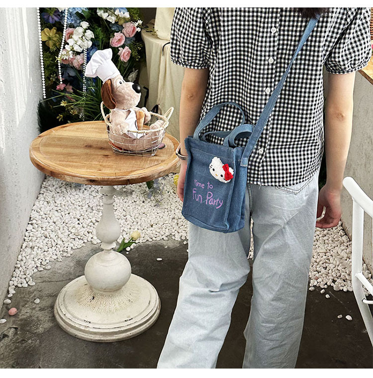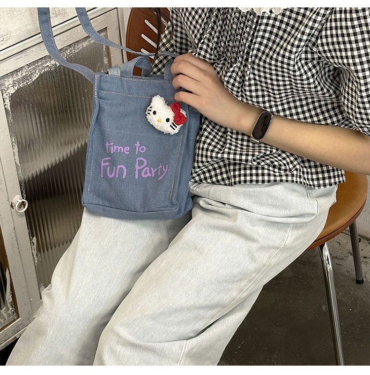 왕 빙빙 같은 스타일 명암 컬러 편지 데님 전화 가방 귀여운 KT 고양이 한국 스타일 휴대용 크로스 바디 작은 가방 유행 어깨 가방스토어 가기