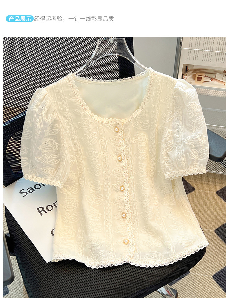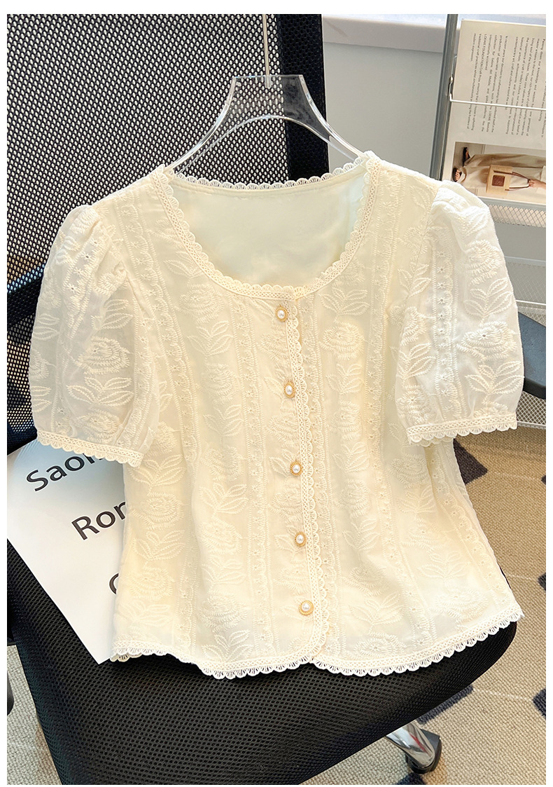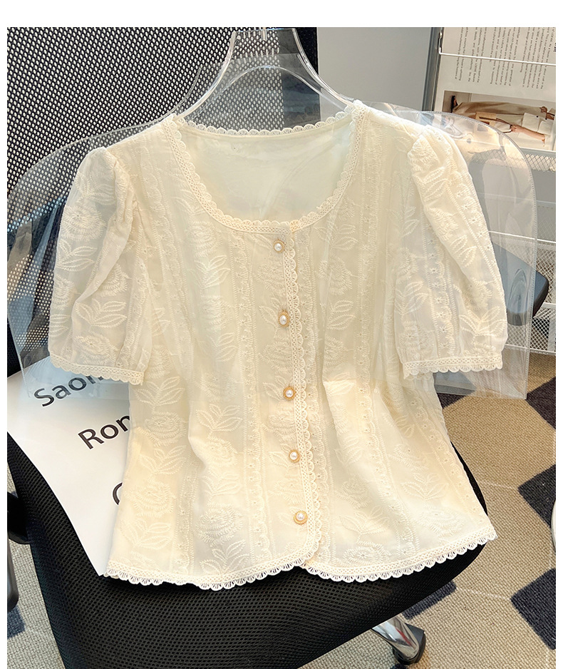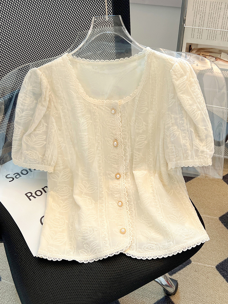 여성을위한 프렌치 퍼프 슬리브 레이스 탑 여름 새로운 기질 쉬폰 셔츠 반팔 플러스 사이즈 여성 셔츠스토어 가기