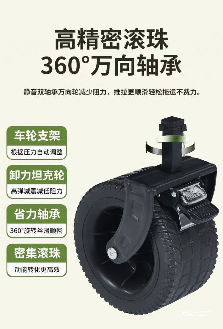 • [제트블랙] 10inch탱크휠/브레이크부착/내하중 250kg -수출공예 [두꺼운 철골/두꺼운 천]]