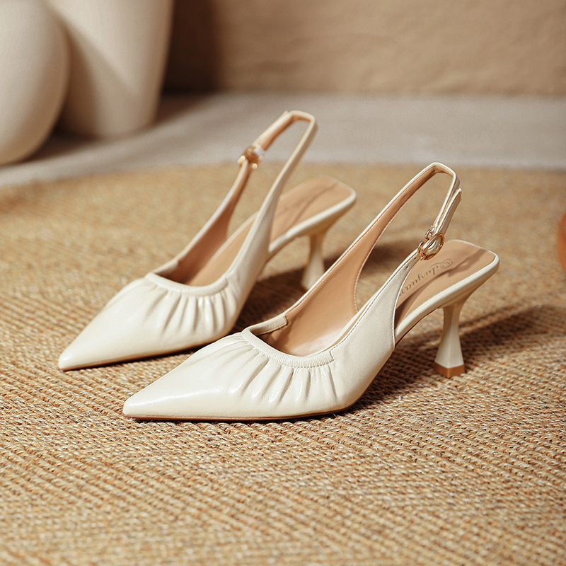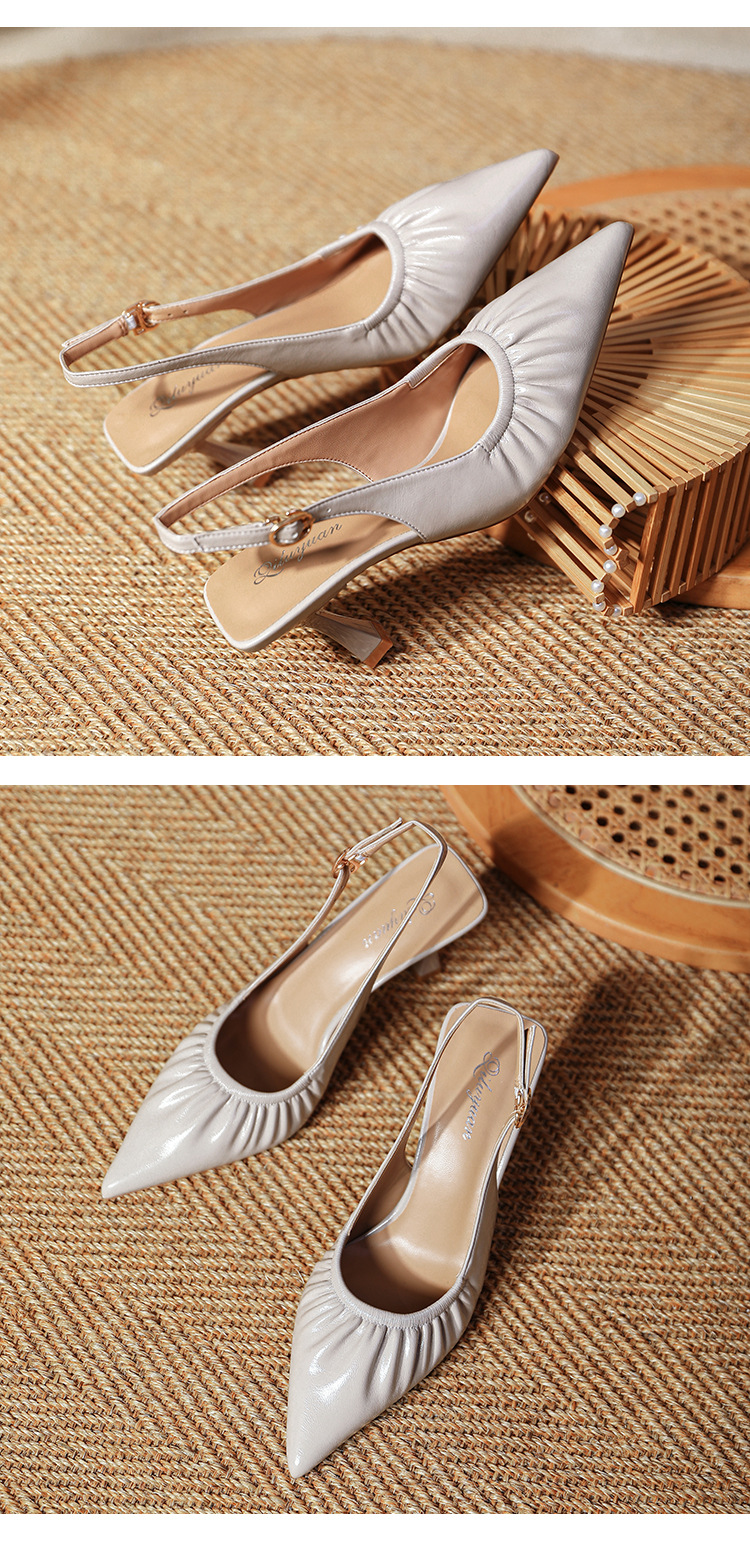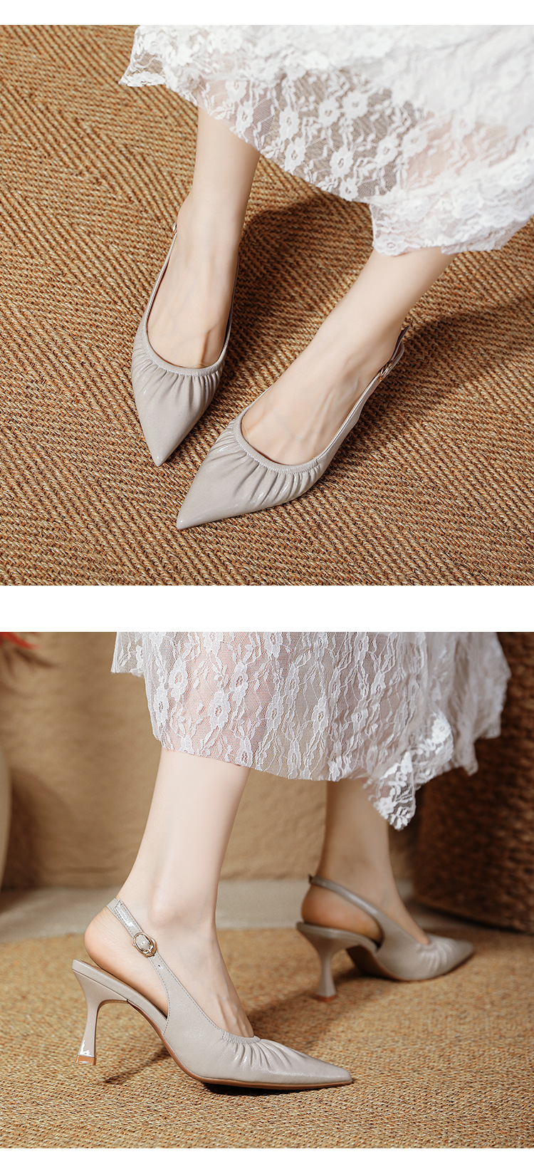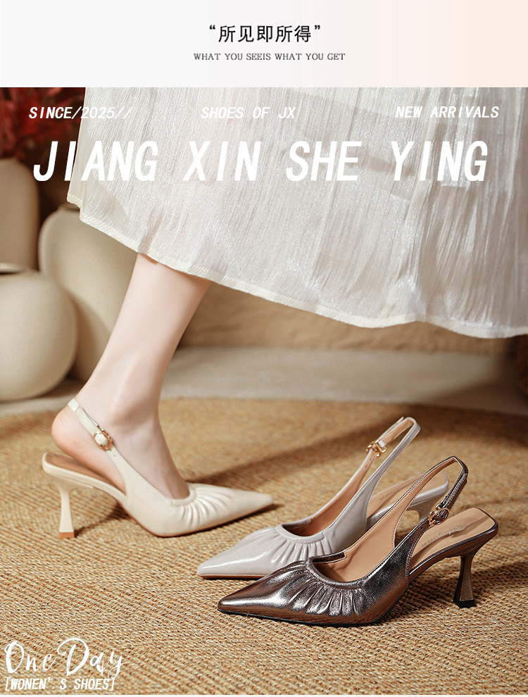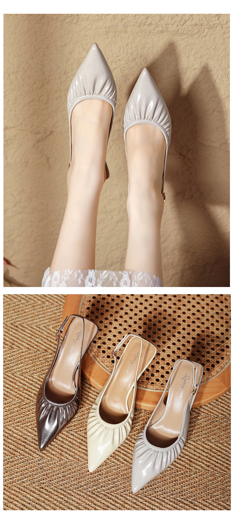 발가락 샌들 여자 여름 2025 새로운 프랑스 주름 얕은 입 헤어 신발 뾰족한 하이힐 여성용 스틸레토 힐스토어 가기