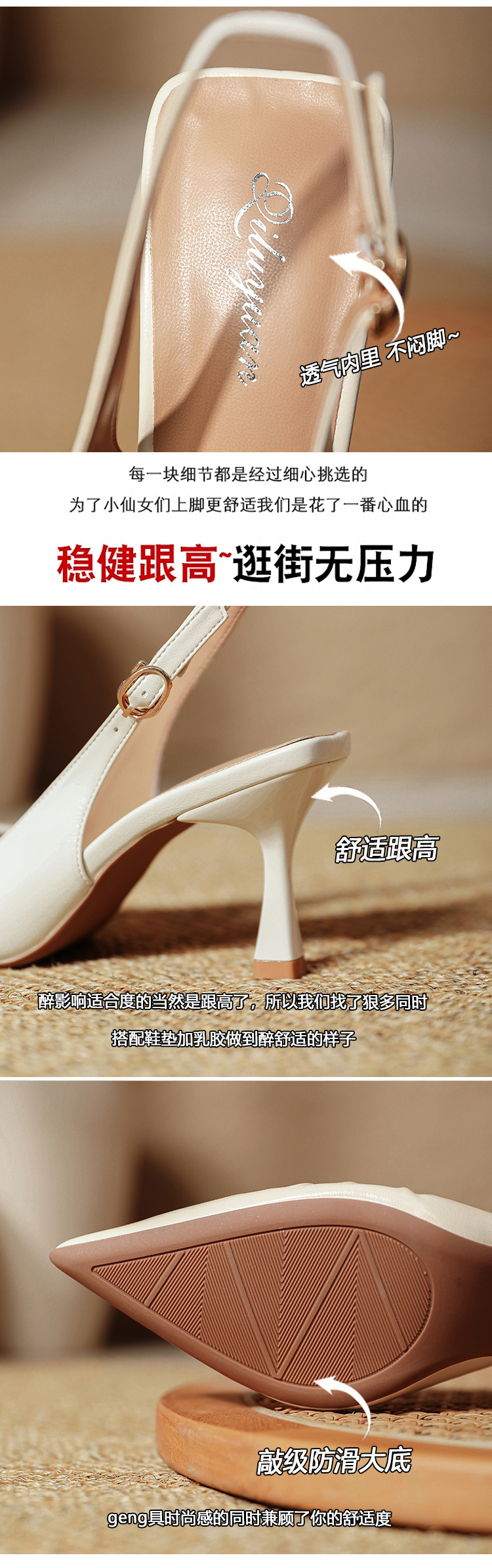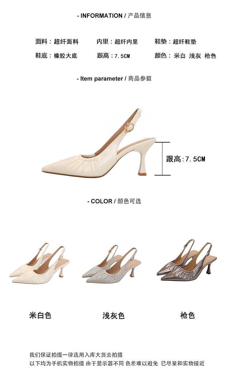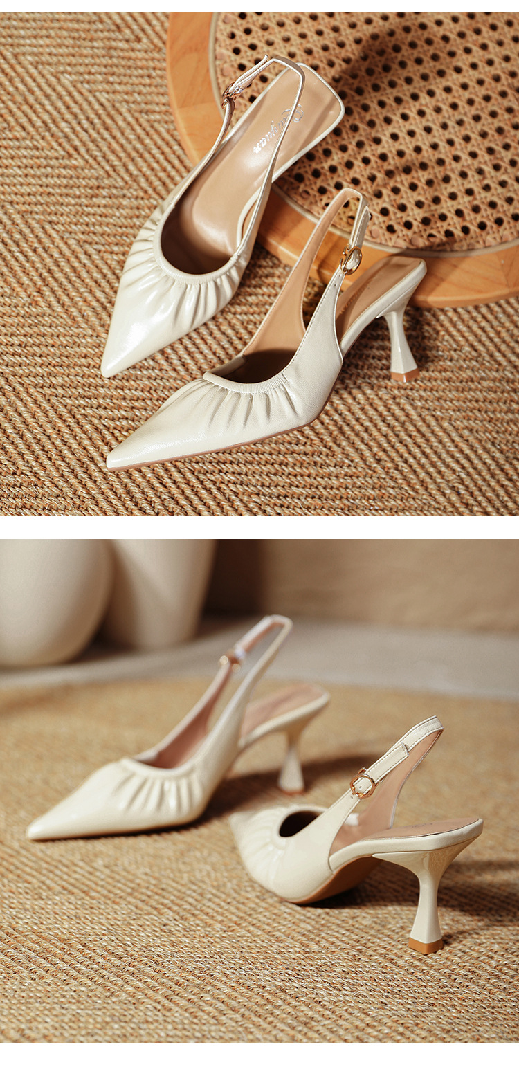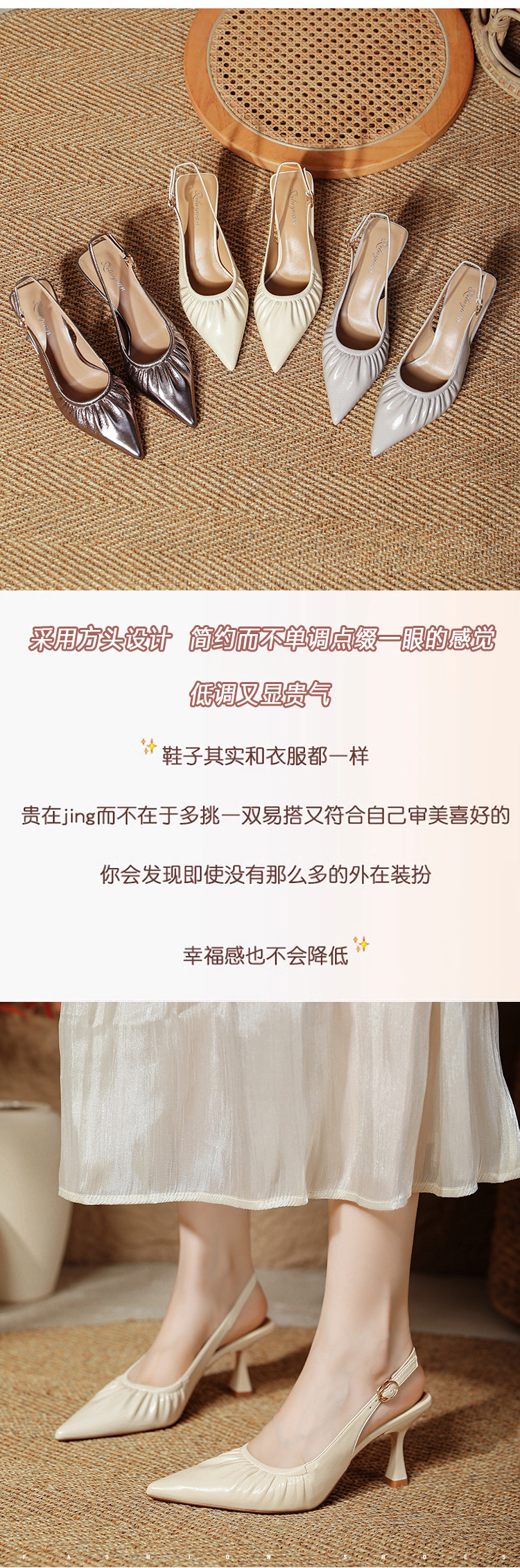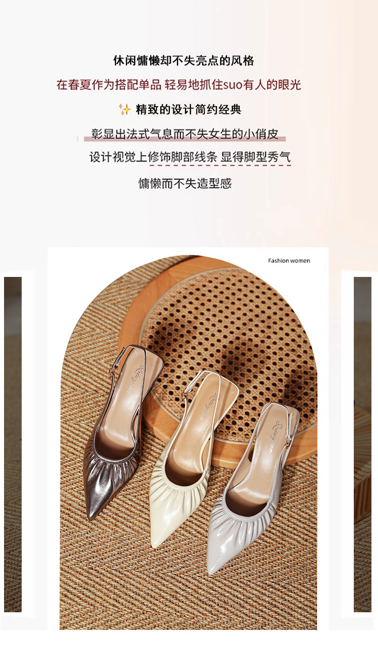 발가락 샌들 여자 여름 2025 새로운 프랑스 주름 얕은 입 헤어 신발 뾰족한 하이힐 여성용 스틸레토 힐스토어 가기