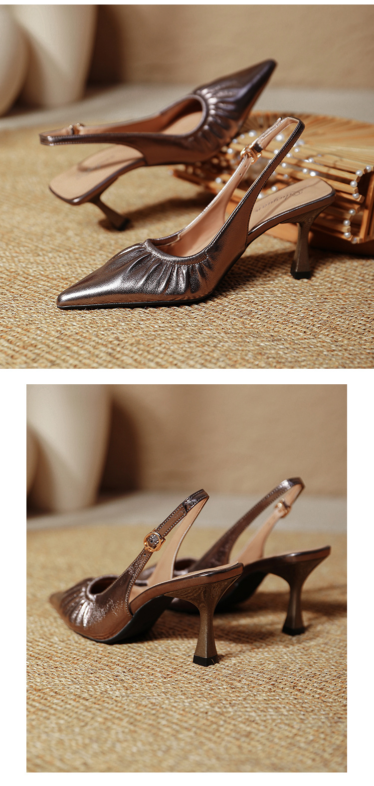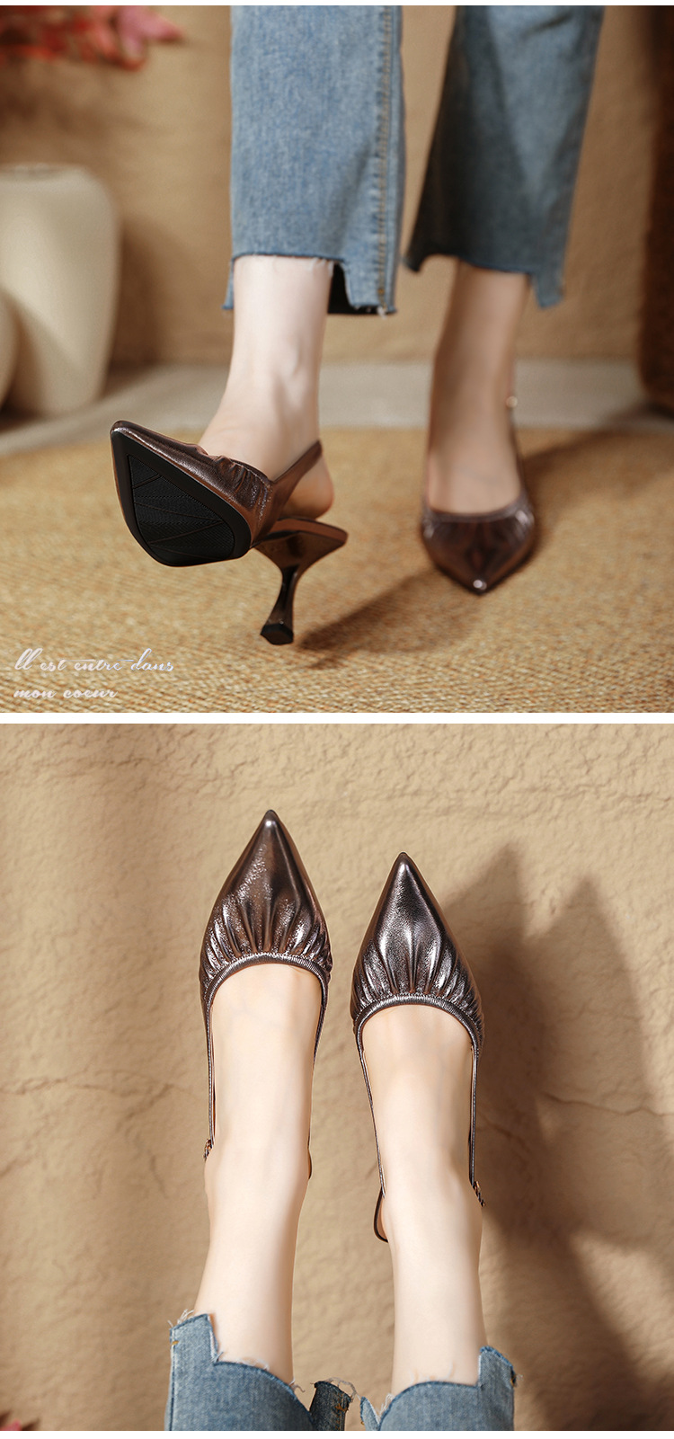 발가락 샌들 여자 여름 2025 새로운 프랑스 주름 얕은 입 헤어 신발 뾰족한 하이힐 여성용 스틸레토 힐