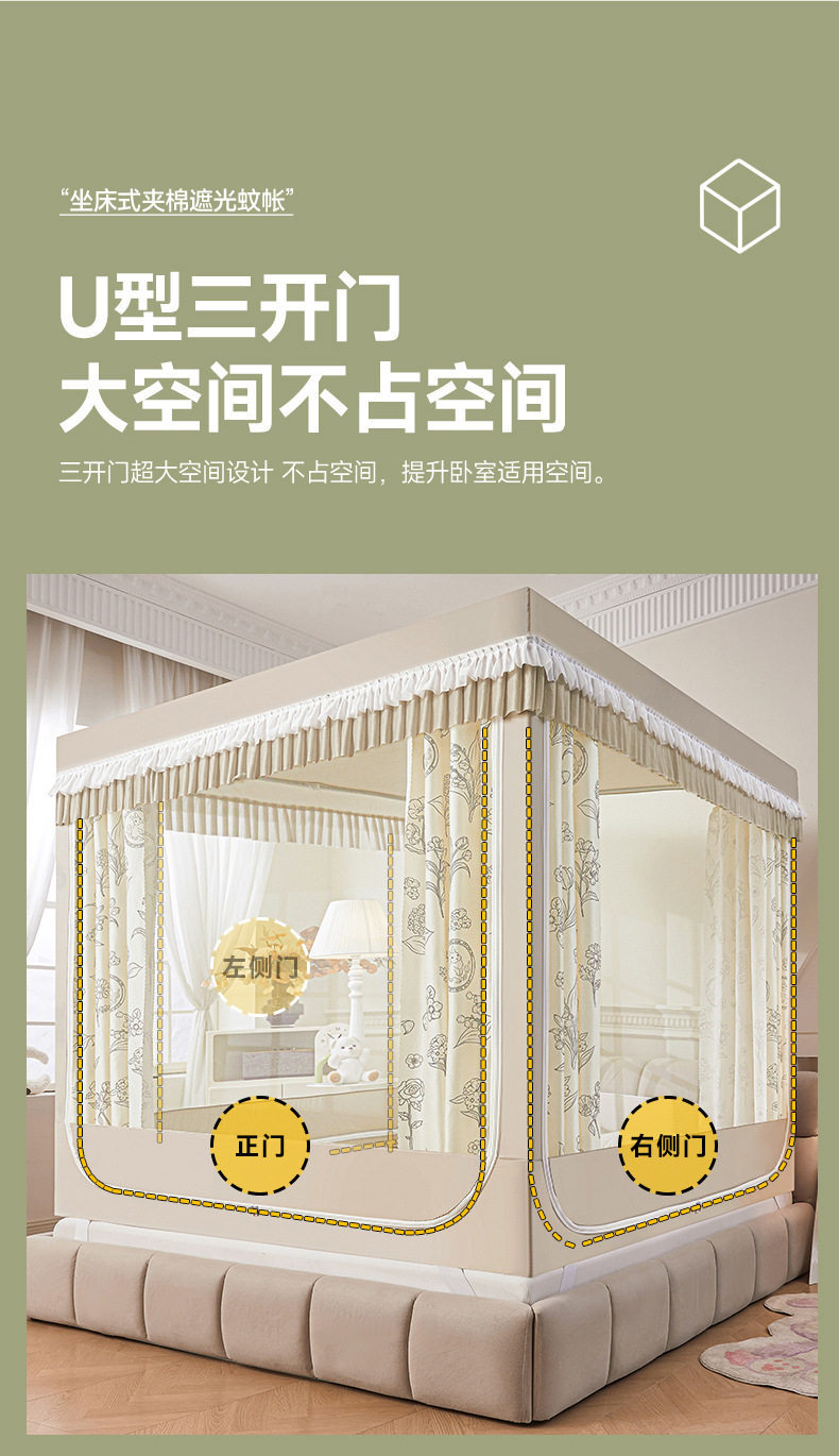 여름 새로운 3 도어 모기장 분리형 어린이 침실 설치 무료 드롭 방지 지퍼 시트 음영 모기장