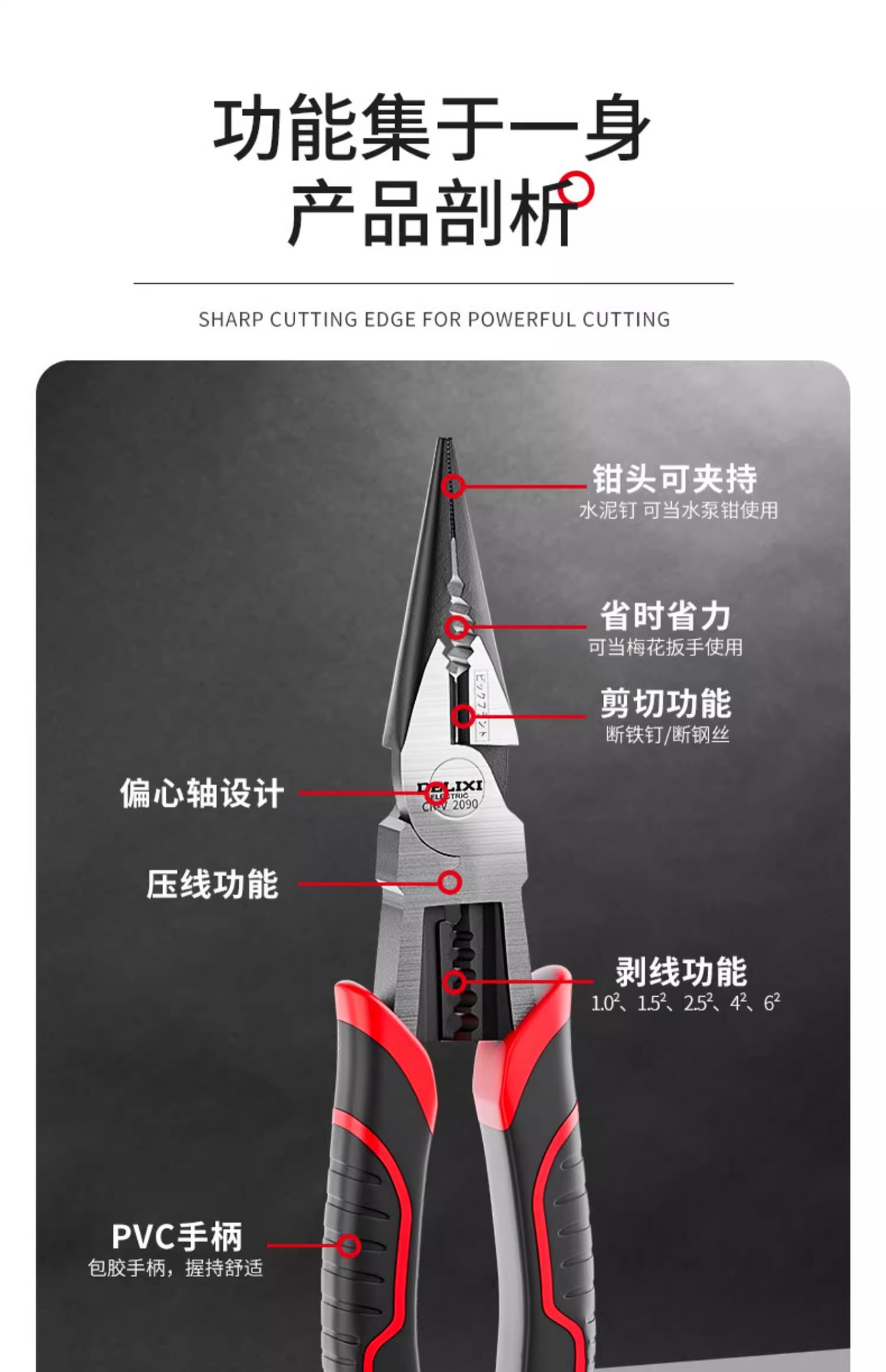 • 8.5inch 니들 노즈 플라이어 [노동 절약 +70%] 업그레이드된 9-in-1