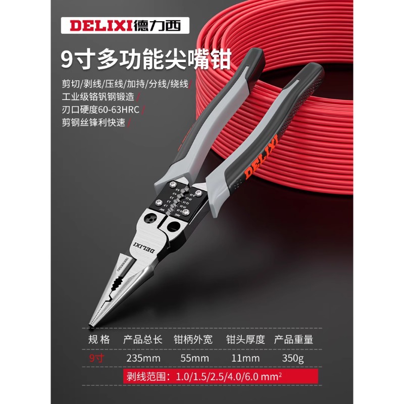 • [8가지 기능 모음] 다기능 9inch점 노즈펜치 [와이어 분리 + 와이어 권선]