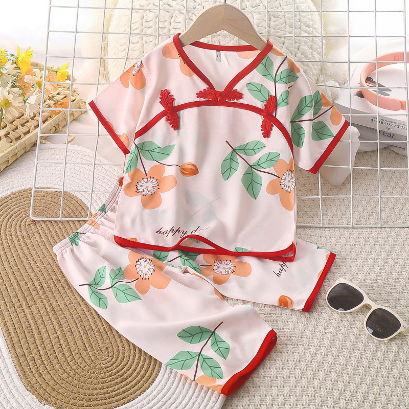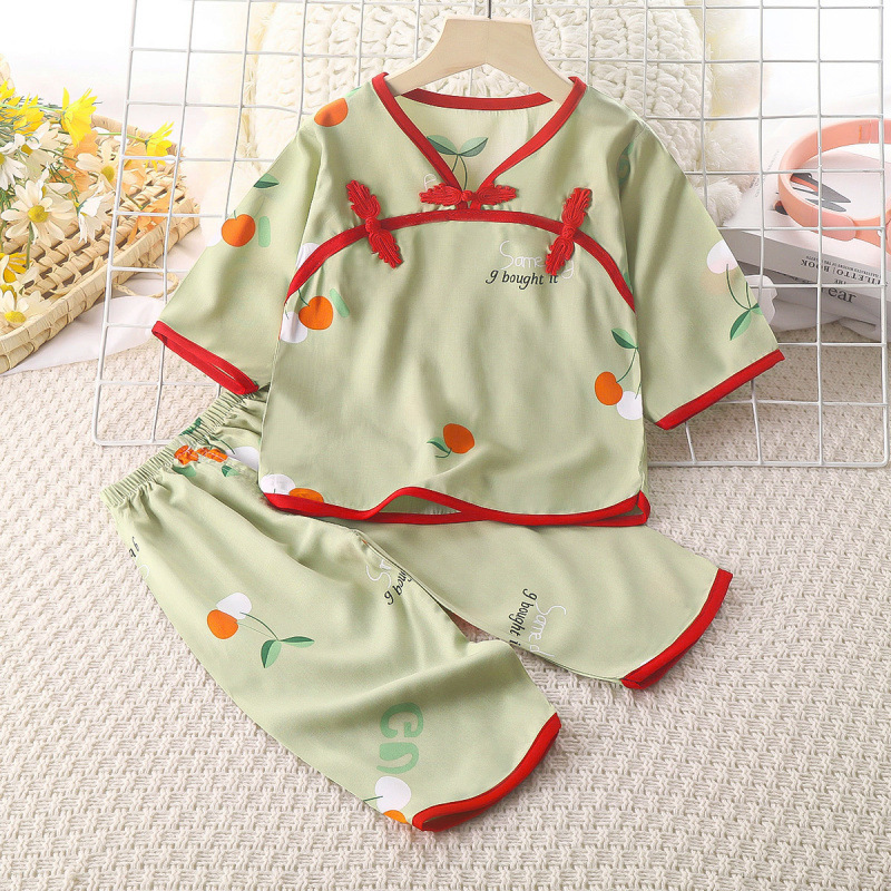 아동복 면 실크 1-10 세 소녀 Hanfu 정장 면 실크 여름 에어컨 옷 아기 겉옷 중국 스타일