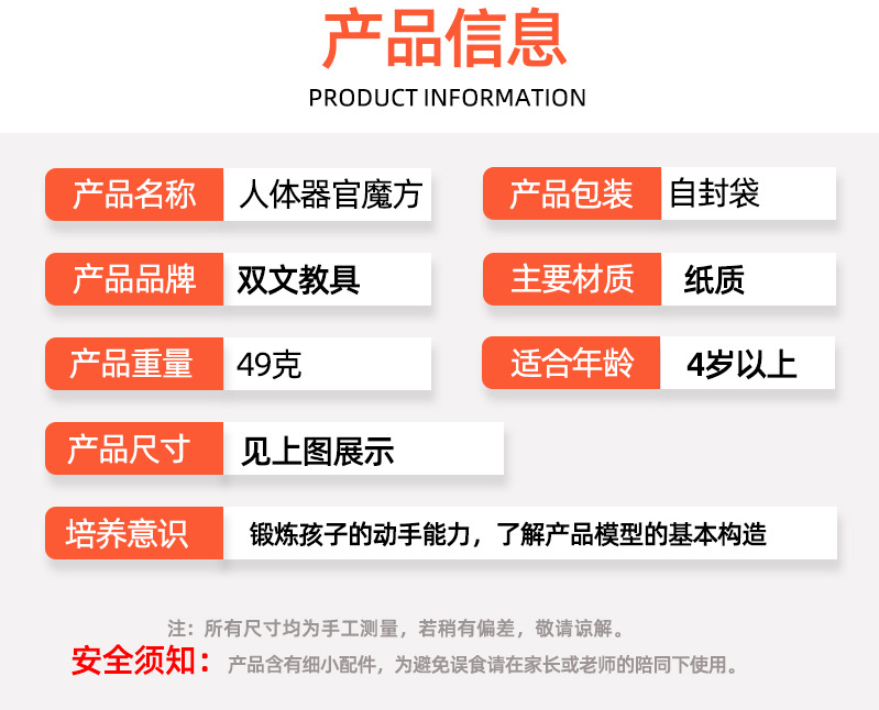 과학 실험 DIY 인체 기관 루빅스 큐브 이해 어린 아이들의 수제 학생 과학 기술 소규모 생산 교육 보조 재료스토어 가기