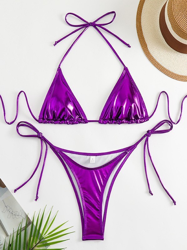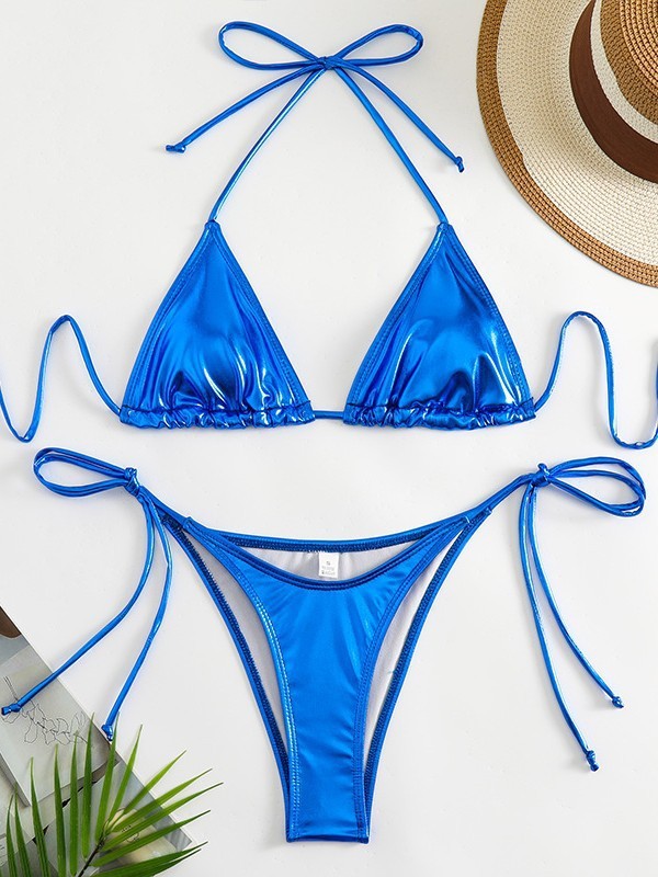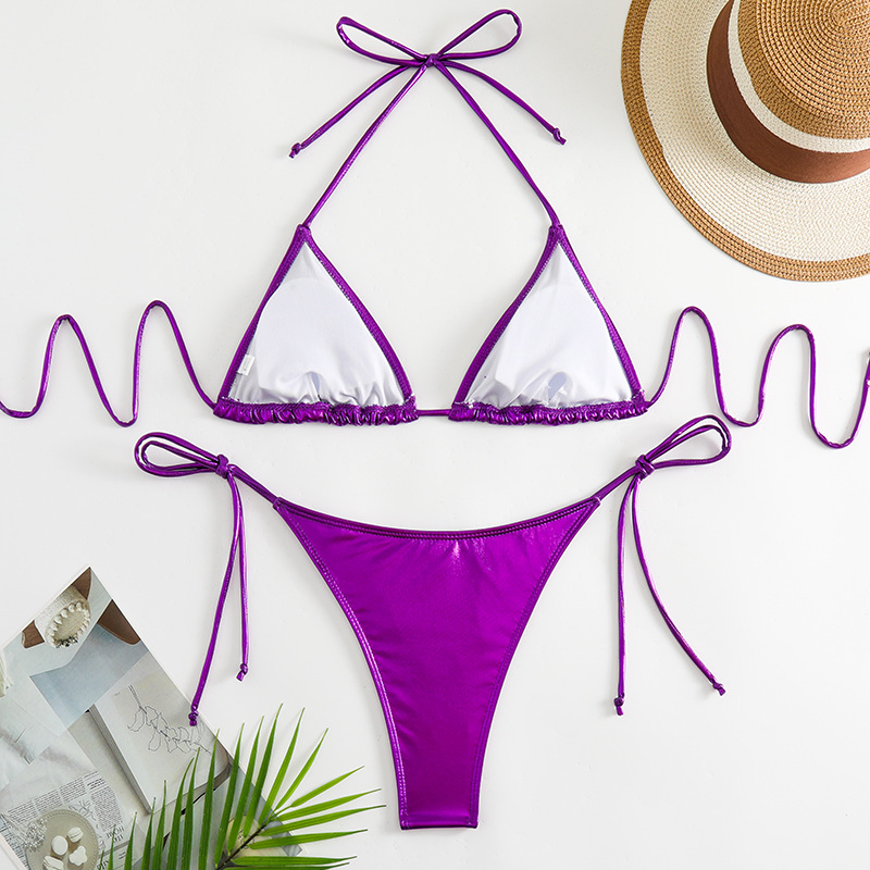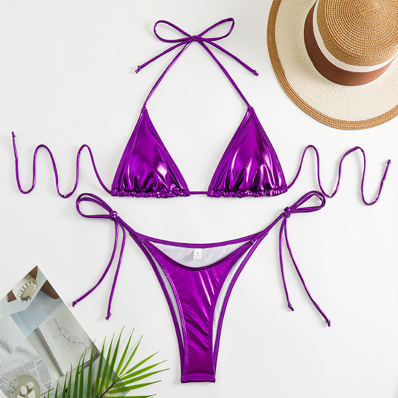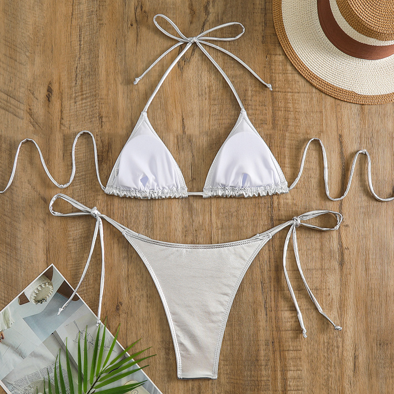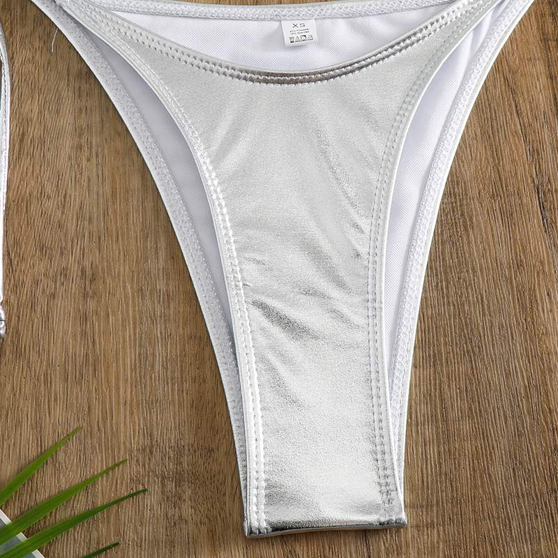 유럽과 미국의 2025 새로운 유럽과 미국의 섹시한 비키니 금박 실버 삼각형 가방 백리스 분할 수영복 크로스 보더 모임스토어 가기