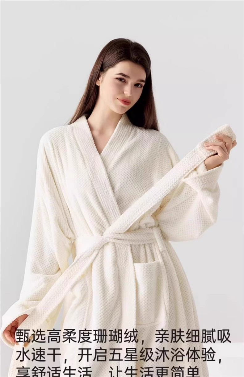 성인용 목욕가운, 여성용 산호벨벳 잠옷, 파인애플 체크무늬, 심플하고 부드럽고 편안하며 흡수성, 속건성, 부드럽고 왁시한 롱 목욕가운