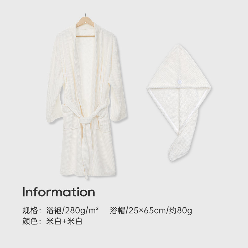 • [코랄벨벳] 오프화이트 목욕가운 + 오프화이트 샤워캡