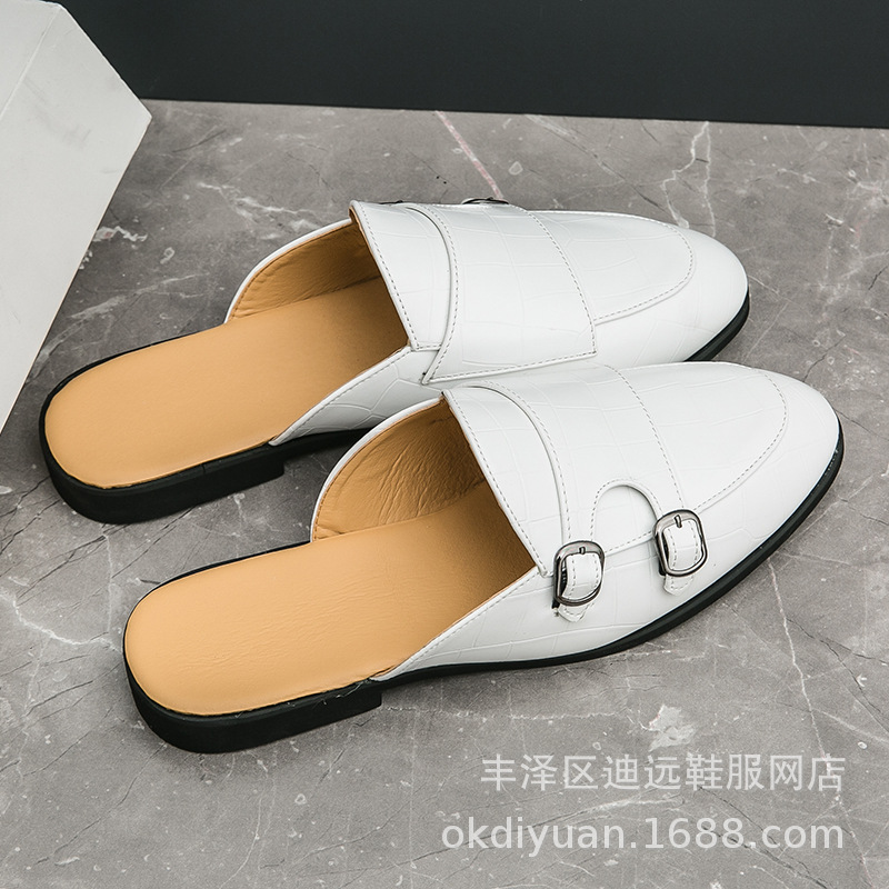 2025 여름 래커 남성 캐주얼 발가락 반슬리퍼 크로스보더 대형 한국 버클 게으른 신발 반슬리퍼 작은 가죽 신발스토어 가기