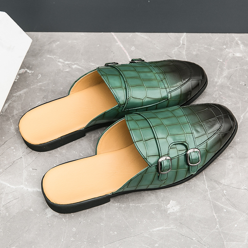 2025 여름 래커 남성 캐주얼 발가락 반슬리퍼 크로스보더 대형 한국 버클 게으른 신발 반슬리퍼 작은 가죽 신발