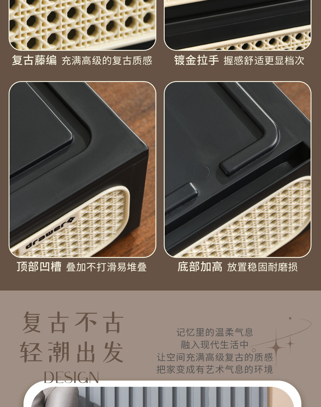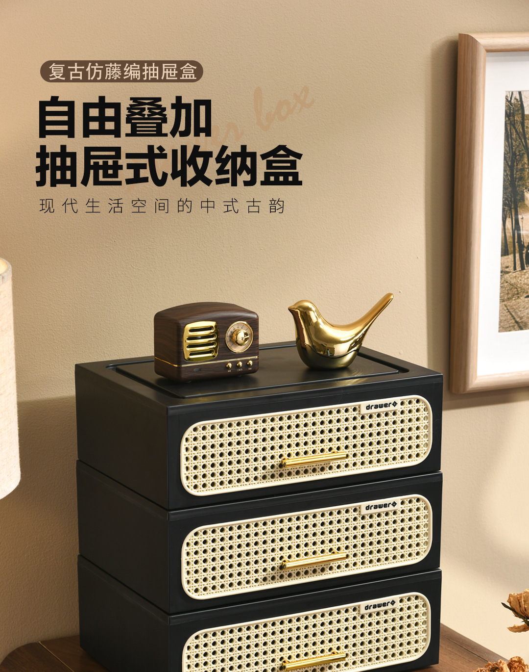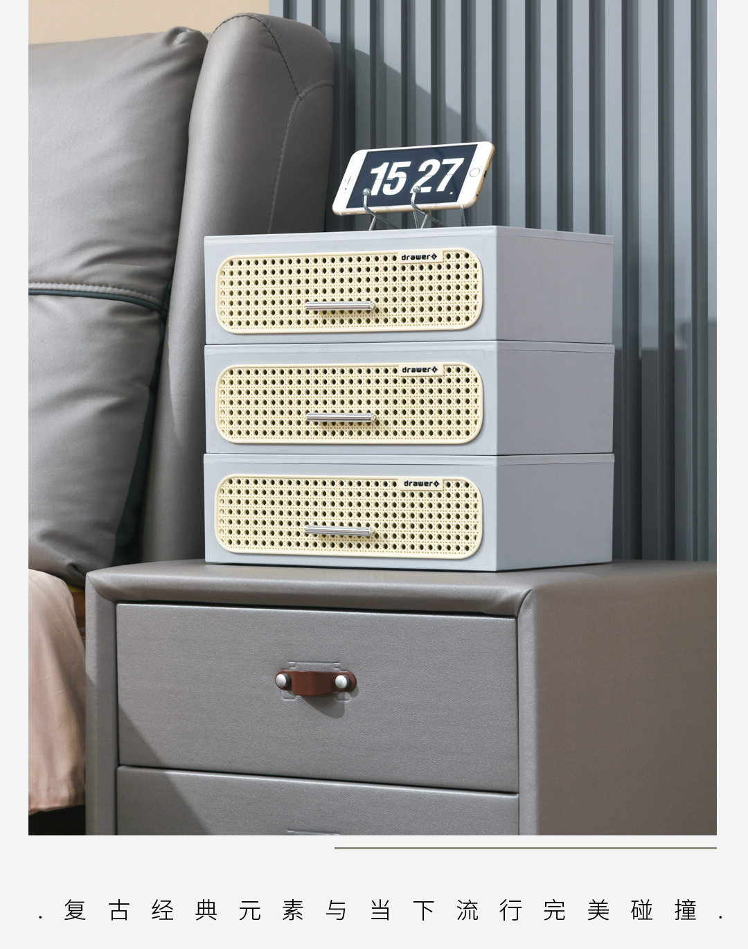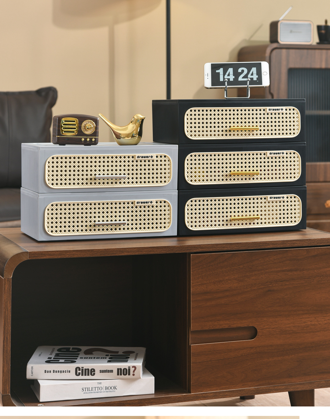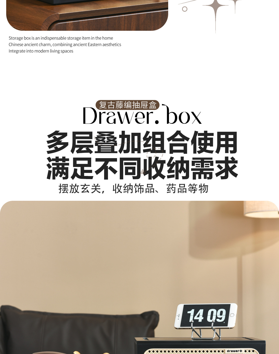 레트로 등나무 침대 옆 테이블 서랍 보관 데스크탑 서랍 화장품 보관 상자 침실 멀티 형식 보관 캐비닛
